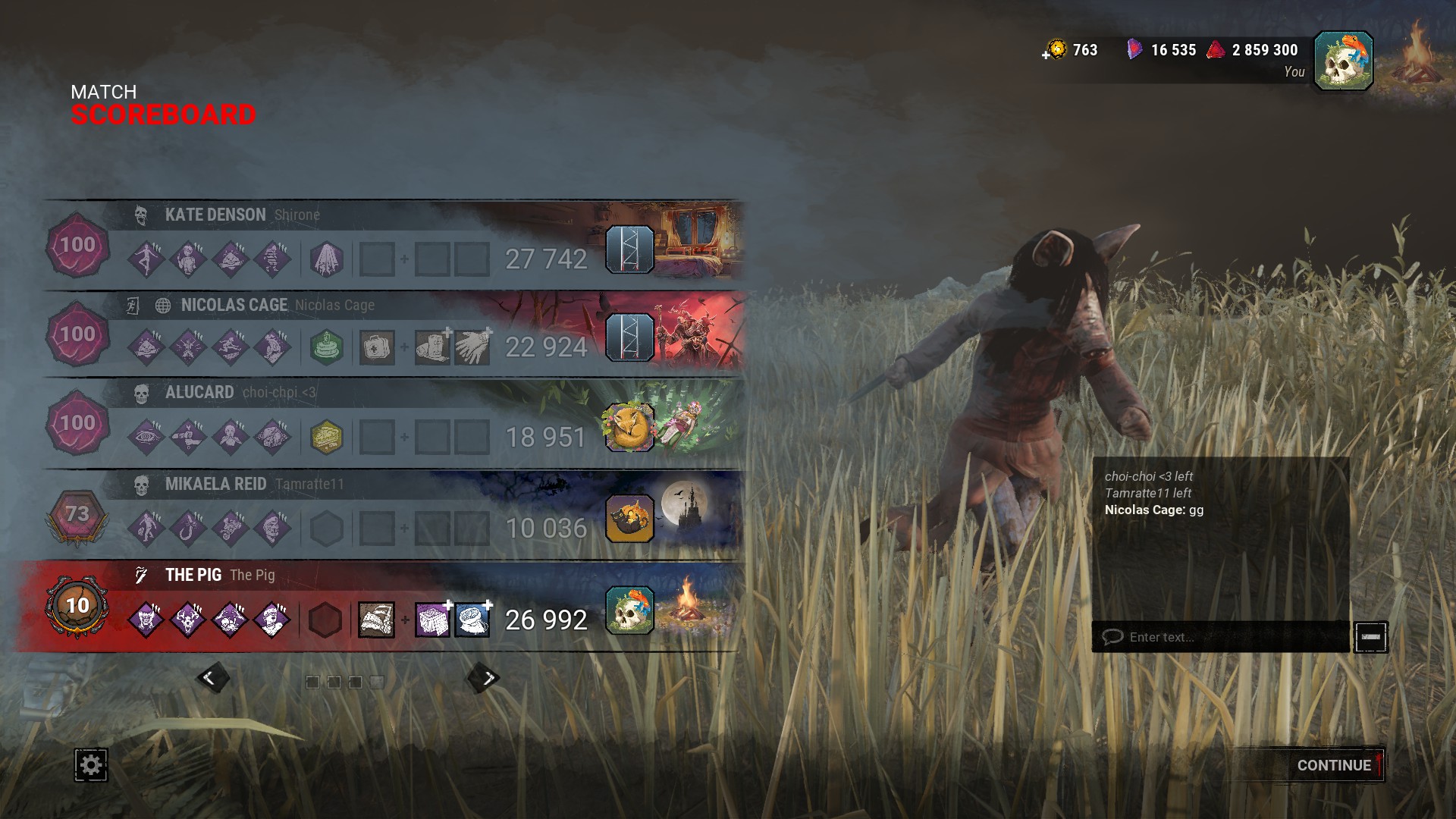 >>544442614thanks for the detailed suggestion anon, I will try piggo>>544443945I enjoy spirit a lot it just gets repetitive. I didn't put her in "boring, too strong" because a lot of people can juke her and my games aren't effortless 4ks. when I play those guys people usually just wave to me to end them>>544444084I have been curious to try ghostface but I'm afraid people will just abuse predrop and hold w