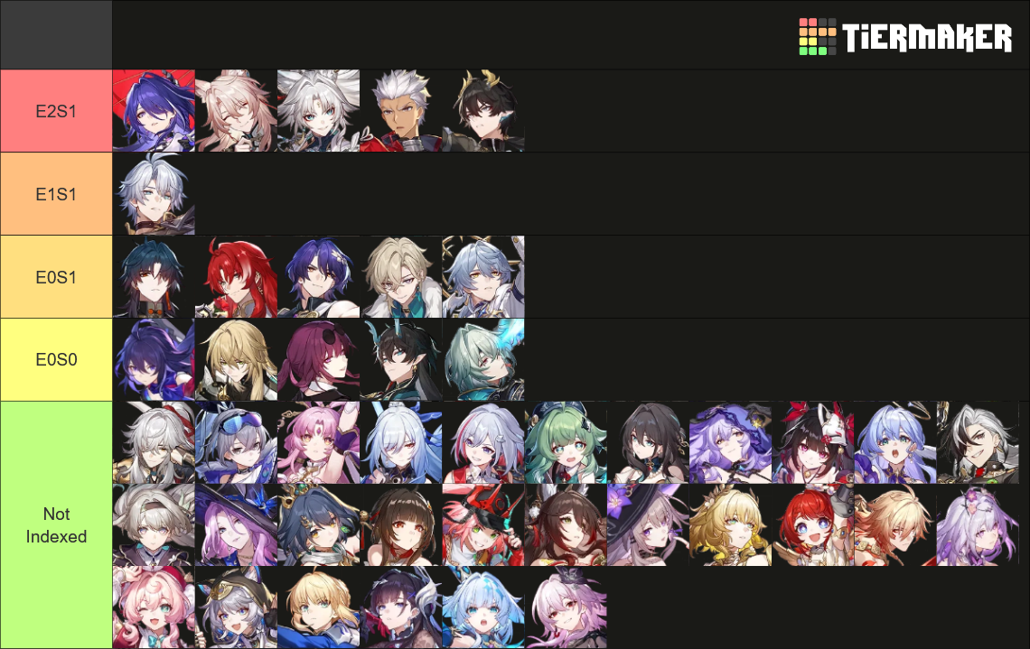 >>544119698>If you already have the full remembrance line up (Cast/Evernight, Hyacine)Cyrene E0>If you like big HertaTribbie E0>If you own a lot of HP scalers (Castorice, Evernight, Blade, Jingliu)Hyacine E1