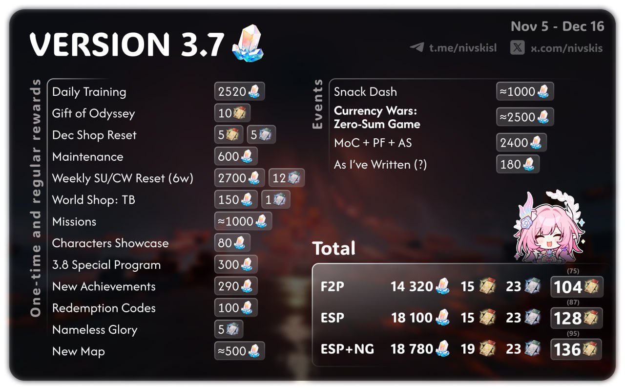 Previous: >>544080743>Version 3.7 "As Tomorrow Became Yesterday" Special Programhttps://www.youtube.com/watch?v=Sx7xZp96nZMhttps://www.youtube.com/watch?v=15x3KOhWsf4>Download - https://hsr.hoyoverse.com/en-us/home>3.7 Preview Page - https://act.hoyoverse.com/puzzle/hkrpg/e20251024vesion_1316/index.html>Version 3.7 Trailer: "As Tomorrow Became Yesterday"https://www.youtube.com/watch?v=r4gljUbCzqAhttps://www.youtube.com/watch?v=-L1PxKwvJ74>Dan Heng • Permansor Terrae Character Trailer: "Home"https://www.youtube.com/watch?v=m-pQBgRsXJIhttps://www.youtube.com/watch?v=mFnxGYaMpDE>Animated Short: "Trek"https://www.youtube.com/watch?v=Msj-hOY9u0Ahttps://www.youtube.com/watch?v=n0F5_9L-KKY>Current Character Banners: Dan Heng • Permansor Terrae, Anaxa + Sushang, Hanya, Serval - https://www.hoyolab.com/article/41743443>New Drip Marketing:>The Dahlia (5* Fire Nihility) - https://www.hoyolab.com/article/41861857>Redeemable Codes - https://hsr.hoyoverse.com/gift9BJ8YE37HM8BFREEDANHENGSTARRAILGIFT>/hsrg/ Tools & Resourceshttps://rentry.org/hsrg-resources-14>/hsrg/ Thread Templatehttps://rentry.org/hsrg-thread-template-14