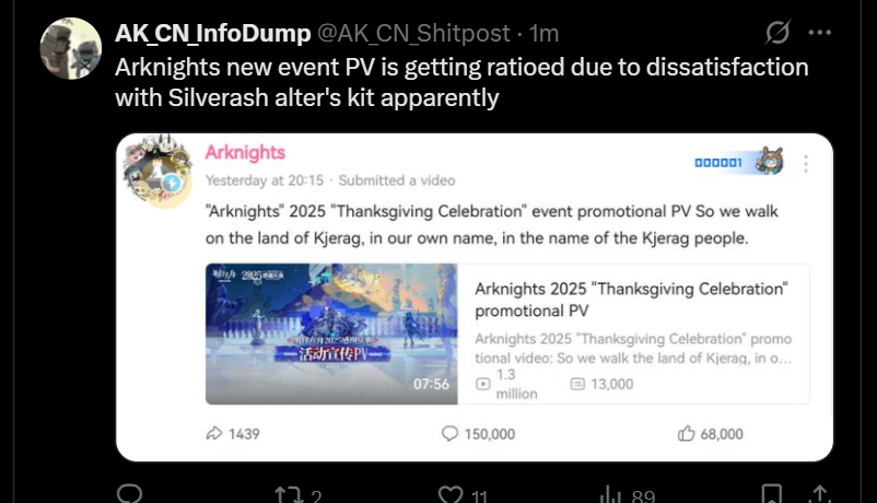 Previous thread: >>544112636>CURRENT, FUTURE GLOBAL/JP/KR CONTENT:[10/24-11/7][Standard]6* Specialist Lee, 6* Sniper Fiammetta, 5* Caster Tecno, 5* Vanguard Surfer, 5* Medic Vendela (Shop)[10/14-11/4]The Masses' Travels - 6* Defender Sankta Miksaparato, 1* Vanguard Confess-47[10/14-10/28][Freedom of Preach]6* Specialist Exusiai the Covenant, 6* Sniper Lemuen, 5* Guard Gracebearer[10/14-10/28][Log-In]PhonoR-0 Skin[10/14-11/11][Iteration Provident, EPOQUE, Achievement Stars, Test & BoC]Wiš'adel, Mlynar, Archetto, Mizuki, Fiammetta, Cantabile[10/14-11/11]Reselling a bunch of skins[10/14-10/30]Duel Channel: Green Grassville>CURRENT, FUTURE CN CONTENT:[10/23-11/6][Standard]6* Sniper Pozëmka, 6* Defender Jessica The Liberated (Shop), 5* Vanguard Fang The Fire-Sharpened, 5* Caster Tecno, 5* Supporter Quercus (Shop)[10/21-11/11]Icebreaker#2 - Chiave skin[10/21-11/11][AK x Sanrio][10/21-11/11][Crossover]Executor The Ex Foedere, Lemuen, Eyjafjalla[10/21-11/11][Crossover Re-Edition]Goldenglow, Lee, U-Official[11/1-11/22]Retracing Our Steps - 6* Supporter Astgenne The Lightchaser, 5* Guard Hadiya (Red Cert), 4* Caster Akkord (Red Cert)[11/1-11/15][A Shared Oath of Guardianship]6* Vanguard SilverAsh The Reignfrost, 6* Caster Pramanix The Prerita, 5* Sniper Snow Hunter[11/1-11/15][Log-in]Estelle skin[11/1-11/29][EPOQUE]Civilight Eterna, Lappland The Decadenza, Vina Victoria, Ho'olheyak[11/1-11/29][Ambience Synesthesia Re-Edition]Wiš'adel, Muelsyse[11/14-11/28][Orienteering Headhunting]6* Guard Ulpianus, 6* Supporter Tragodia, 6* Supporter Stainless, 6* Sniper Narantuya, 6* Caster Nymph, 6* Guard Młynar, 5* Vanguard Mitm, 5* Guard Gracebearer, 5* Vanguard Poncirus, 5* Defender Bassline, 5* Medic Hibiscus The Purifier, 5* Caster Aroma>/akg/ website:https://akgcc.github.io>AK EN Database:https://puppiizsunniiz.github.io/AN-EN-Tags/akhrchars.html>More valuable resources:https://rentry.org/akg_resources>/akg/ merch guidehttps://rentry.co/akg_merch