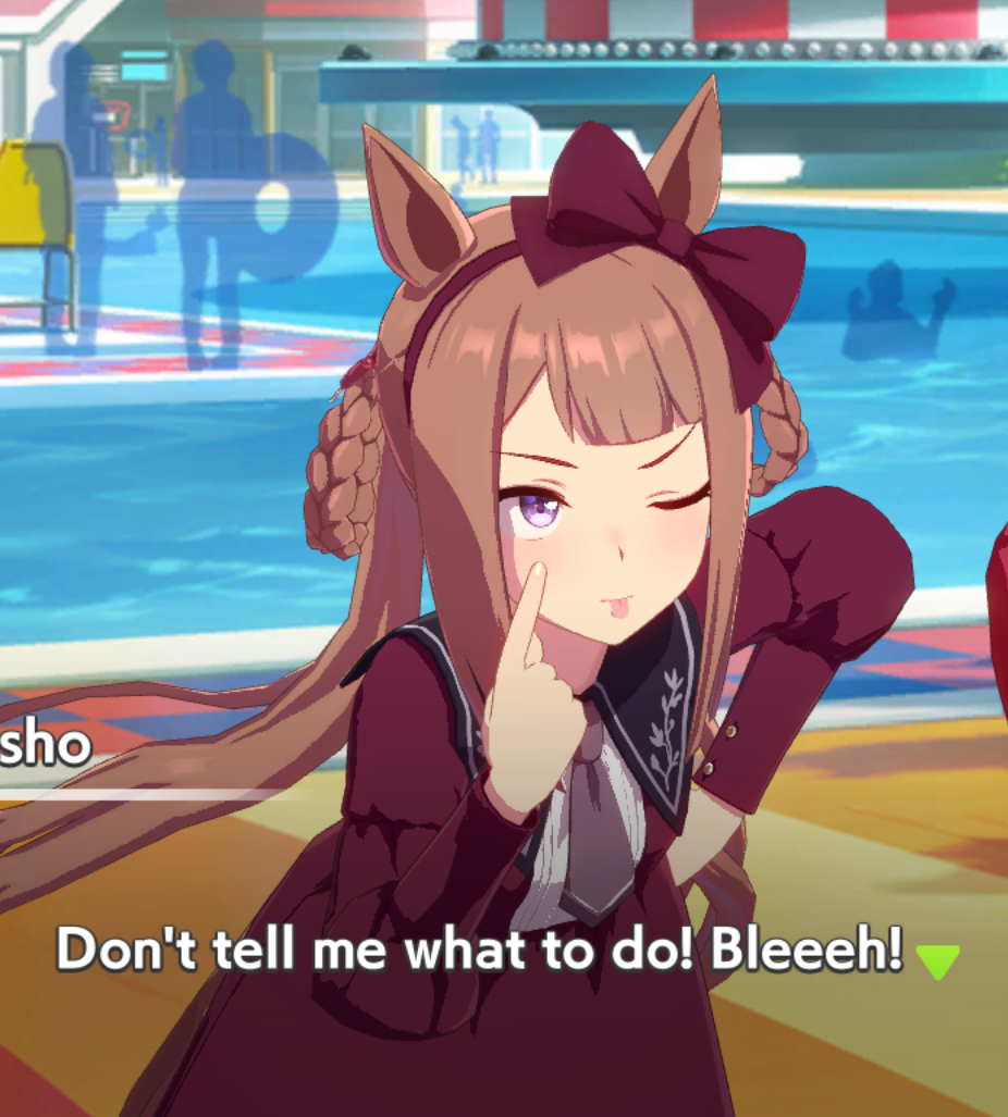 >>544181668She just loses races for no reason. She loses important races for no reason. She's just a loser. Her stats were great. Good skills AND SHE STILL COULDN'T EVEN MAKE IT TO THE UMA CUP BECAUSE SHE LOST HER SECOND TO LAST STORY RACE BECASUE WHATEVER. Not to mention SHE KEEPS TANKING HER MOOD FOR FUNZ.