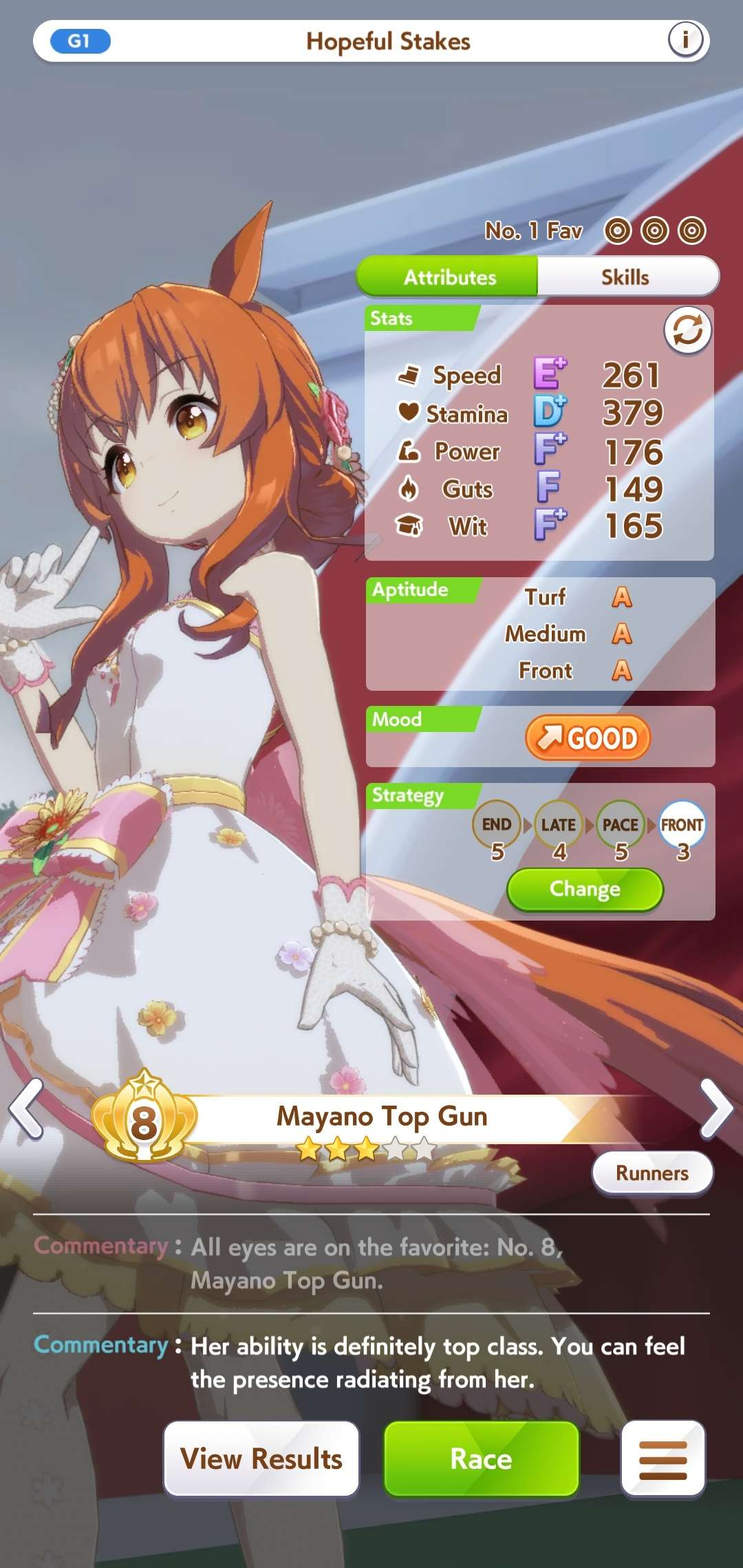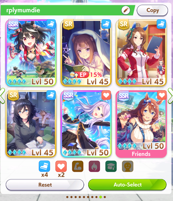 >>544180814It still reverts back into Pace as default the next time I try to join rooms>>544181031I see. I'll try resetting my daily missions and see if she'll default as pace>>544181045That's what I did. I kept losing as Late on URA so I ran her as Pace instead