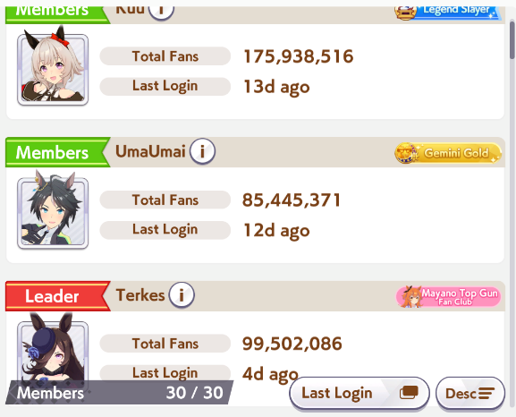 >Danchou has a monthly uma tournament for club members where he rewards the 1 place with 100$, 2 with 30$ and 3 with 20$ all from his own pocket>someone finds out that two club members were sharing their account to give them both a leg up in the tournament, they admit they were doing that kek>They both get desqualifed and the uma cup will have to restart againironically I'm not even part of the club anymore since I found a semi-casual A+ club without the 50 million fans quota bs, but danchou never thought of kicking me out of the club kek