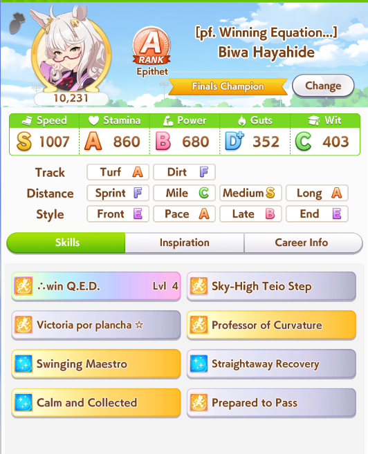 >>544151125as it turns out, trying to rely on a skill that only activates in 10% of races is a complete waste when you could instead get skills that activate 80% of the time
