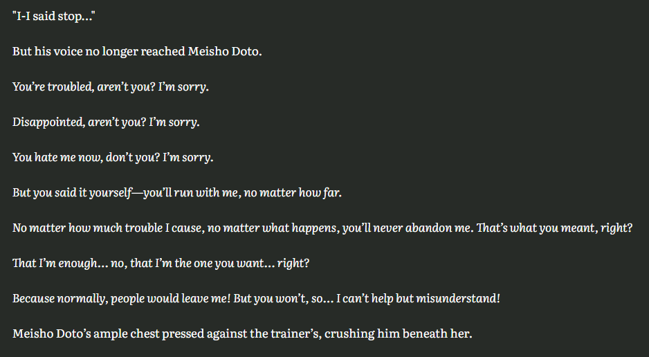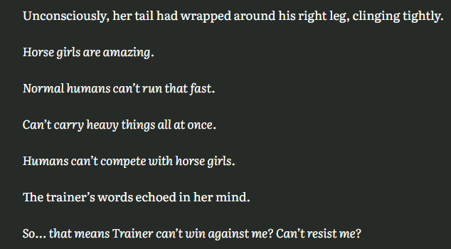 >mare based uma>high maintenance one way or the other >stallion based uma>massive slut for their trainerExplain