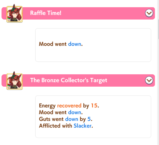 >get fuck all sparks>all runs are relatively stable>never see random ass events that give negative conditions>finally get some decent runs with sparks>SLACKER>MIGRAINE>random mood down events x10you cant fucking tell me this game isnt rigged