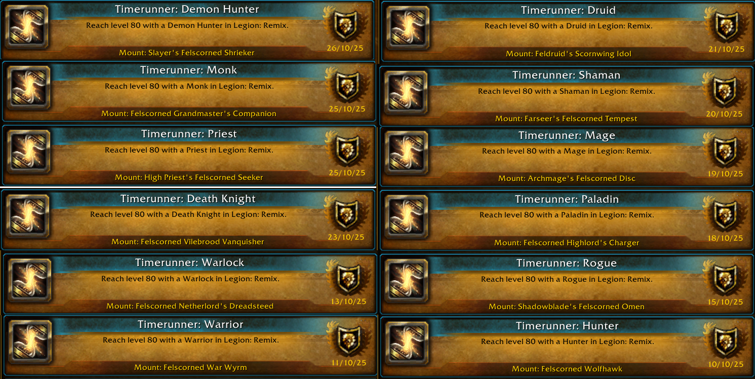 I'm not even trying to hit 999. And I should make it clear that my goal was to setup for Midnight, that's why I leveled all available classes to 80.