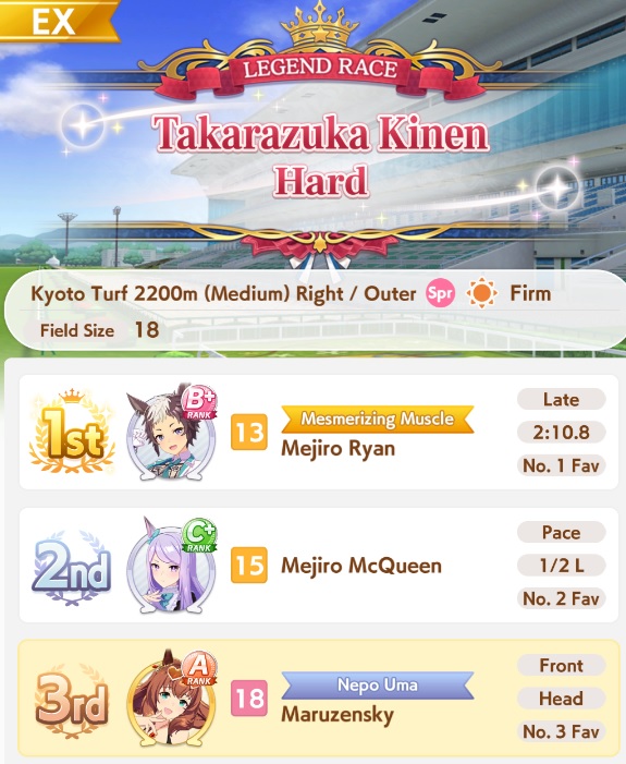 >>544223765Oguri Cap (as in peak) takes the goldHaving a solo front maruzen is probably not a good ideaCM4 36832134