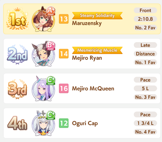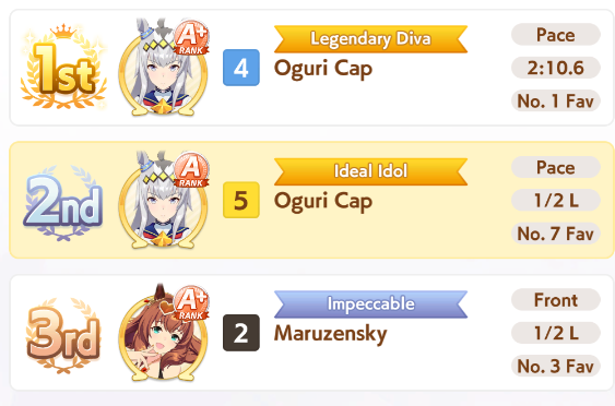 >>544223441>5 top spots>only 2 umasWe wont see diverse sprint races until we get a sprint CM will we?Mile starting up next!