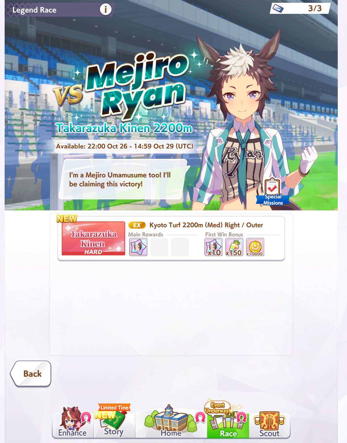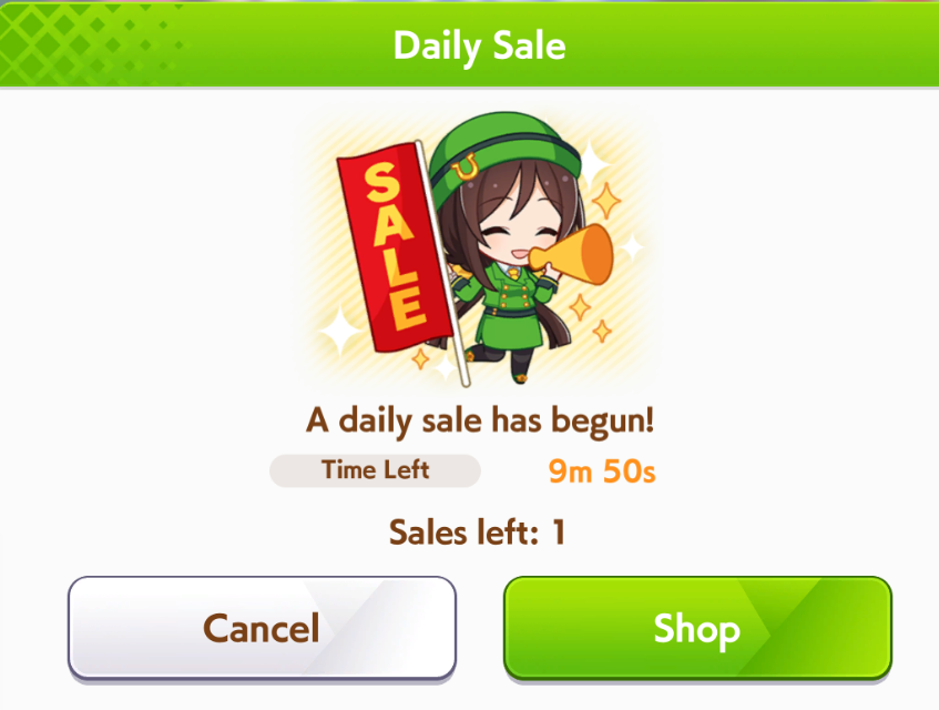 TAZUNA! It's been 10 hours! I have no more RP/daily races/legend races! Hurry up with the scam shop!!! You are impeding my MANT stockpiling!!!