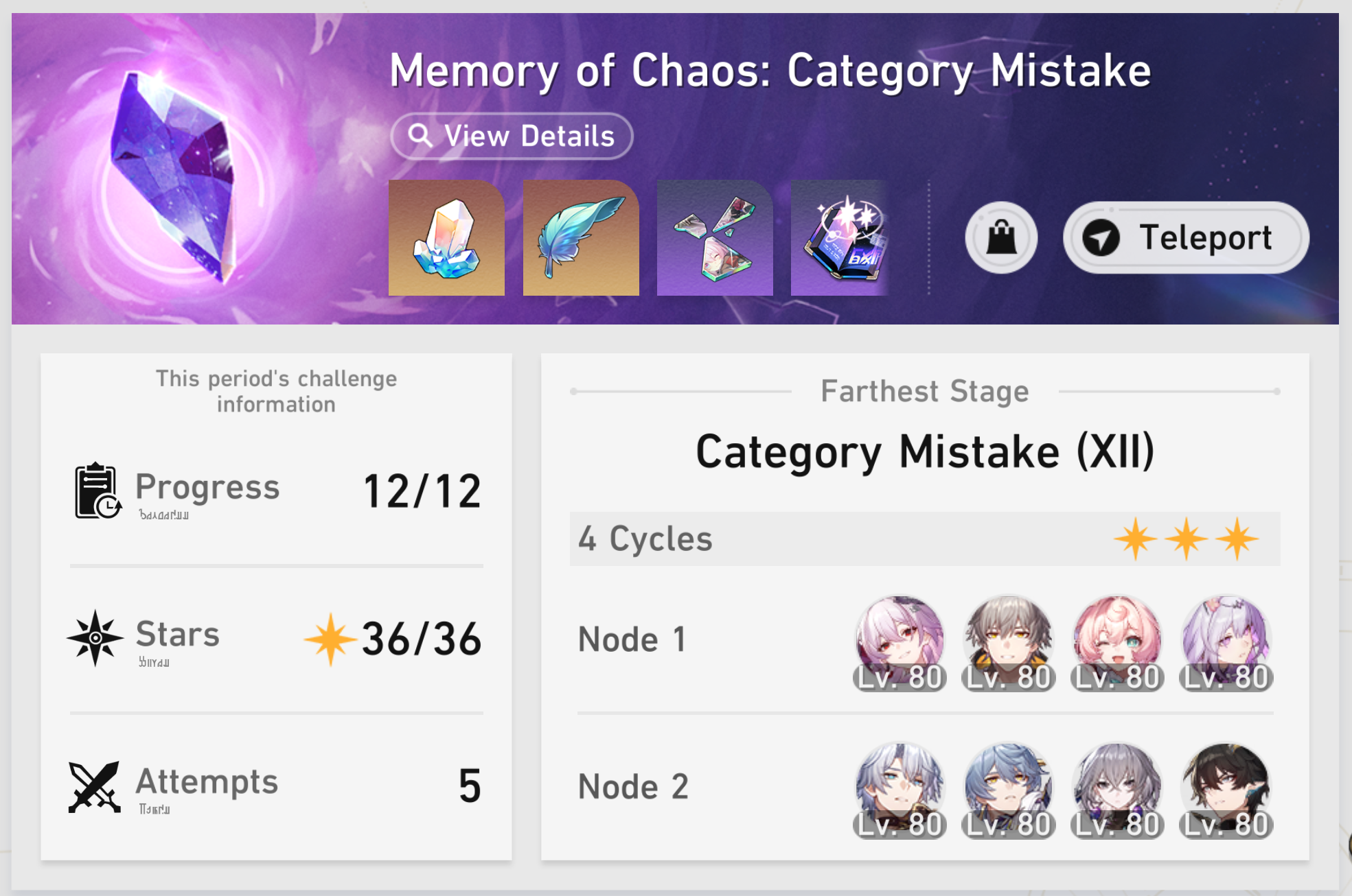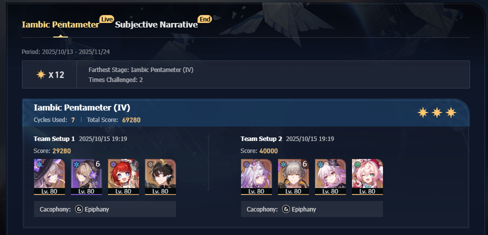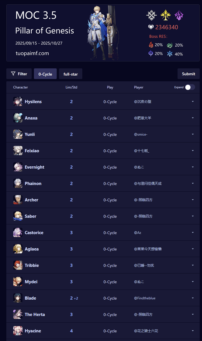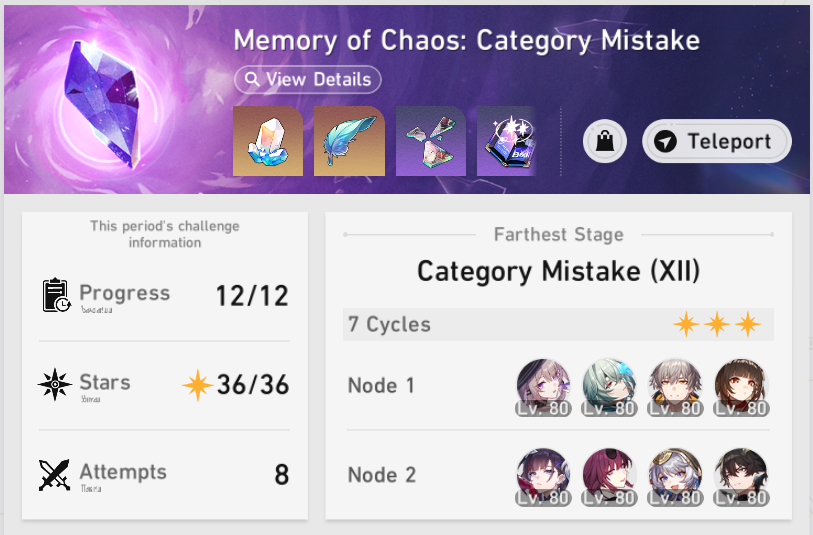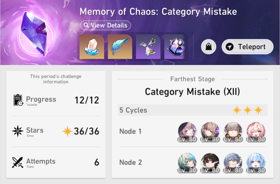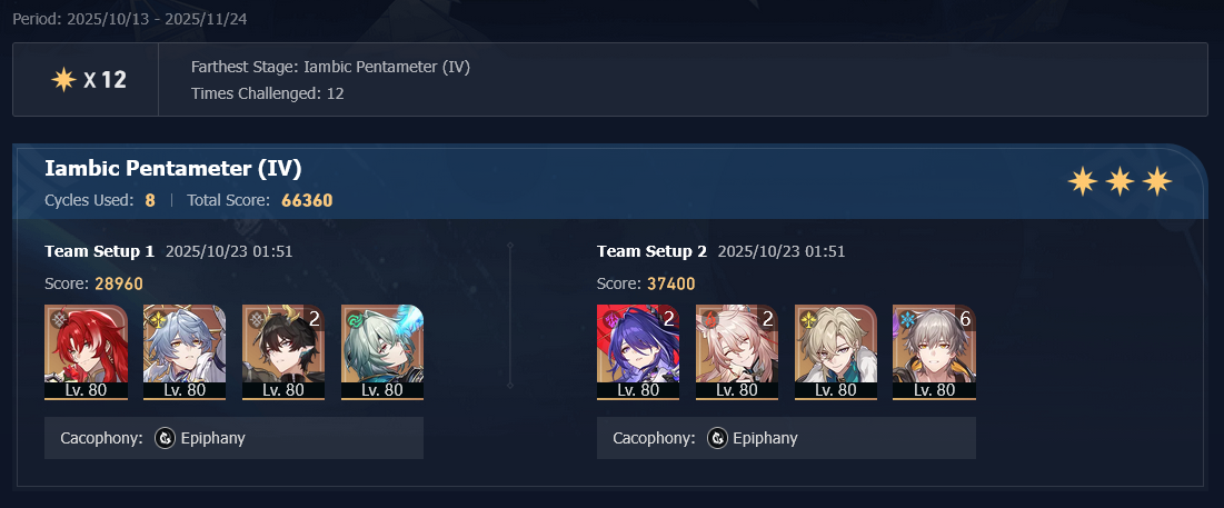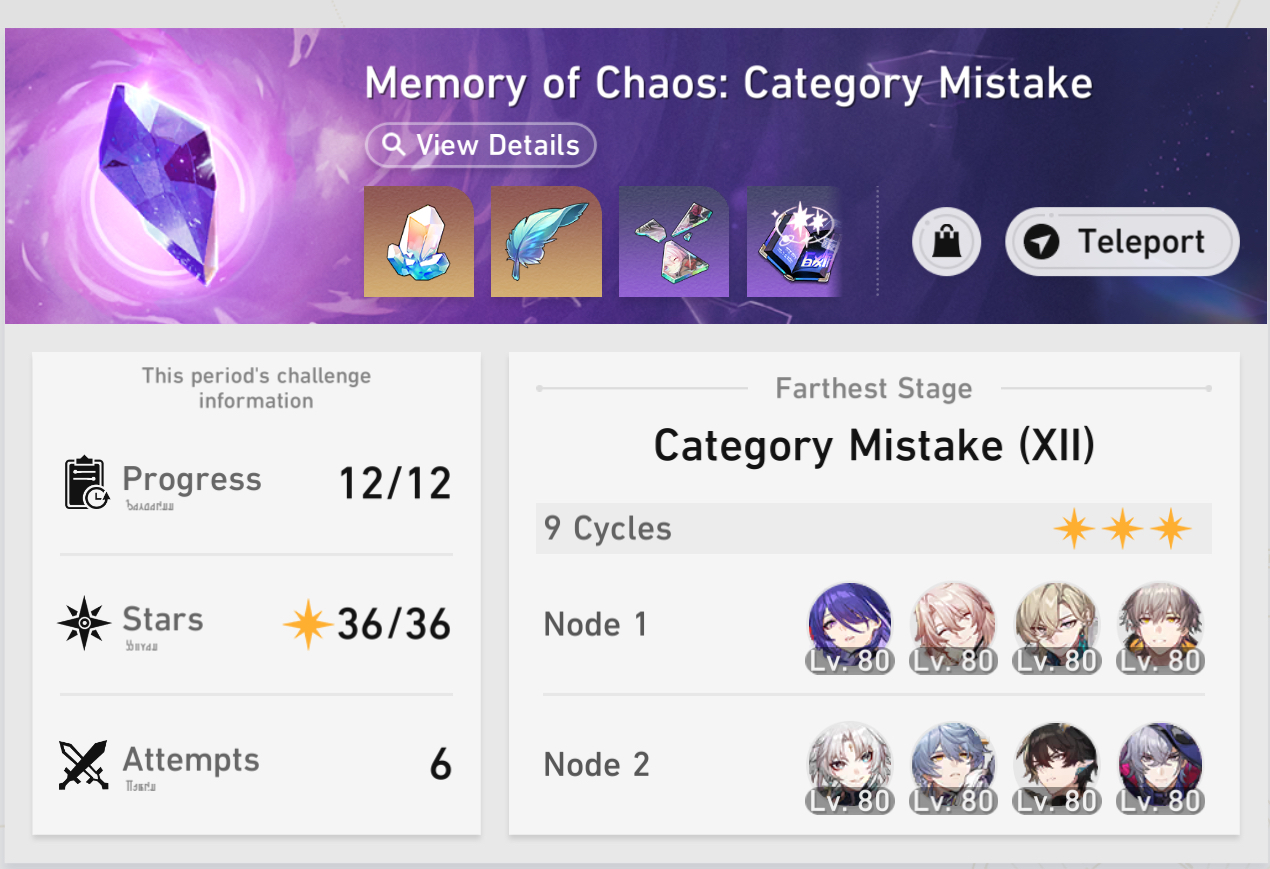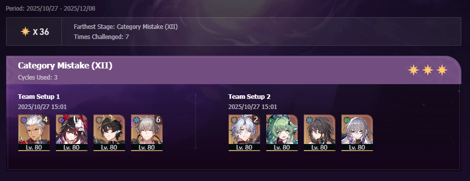 My F2P Tribbie+RMC-powered Castorice with Gallagher did the first stage in 5 cycles and then Phainon wiped the second in 2. Teambuild better.