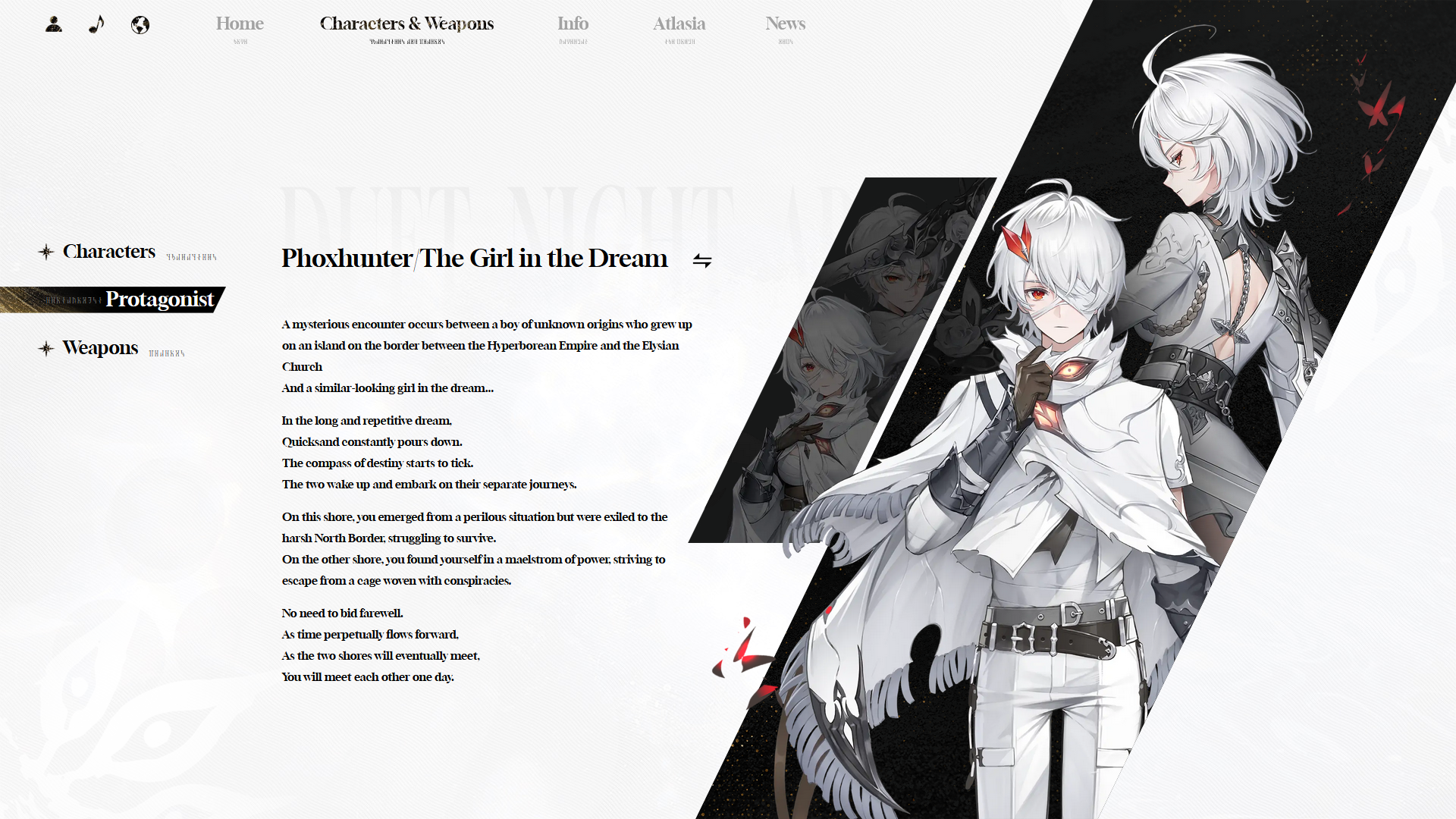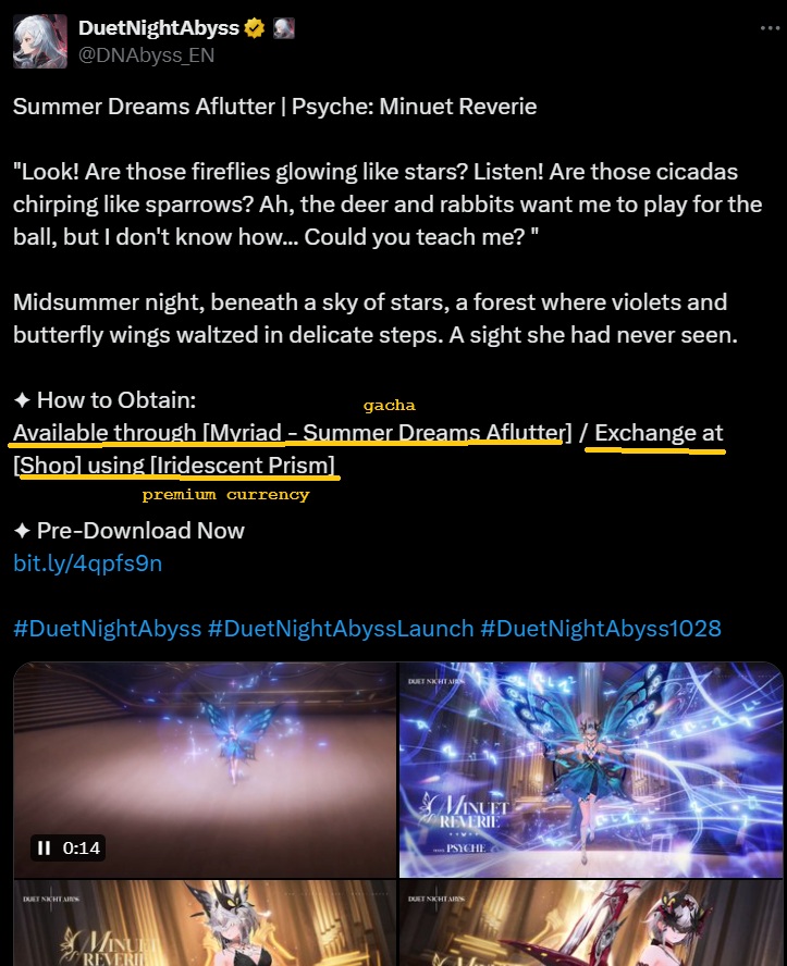 Previous: >>544081471Choose your fighter edition>Pre-Download26/10 at 10:00 AM (UTC+8)>Release28/10 at 10:00 AM (UTC+8)>Steamhttps://store.steampowered.com/app/3950020/Duet_Night_Abyss/>Websitehttps://duetnightabyss.dna-panstudio.com/#/home>Twitterhttps://x.com/DNAbyss_EN>Duet Night Abyss | Global Launch Special Programhttps://www.youtube.com/watch?v=wWNBT7aoF4Y>Characters & Weapons19 playable characters and 45 melee/ranged weapons — all available for free!