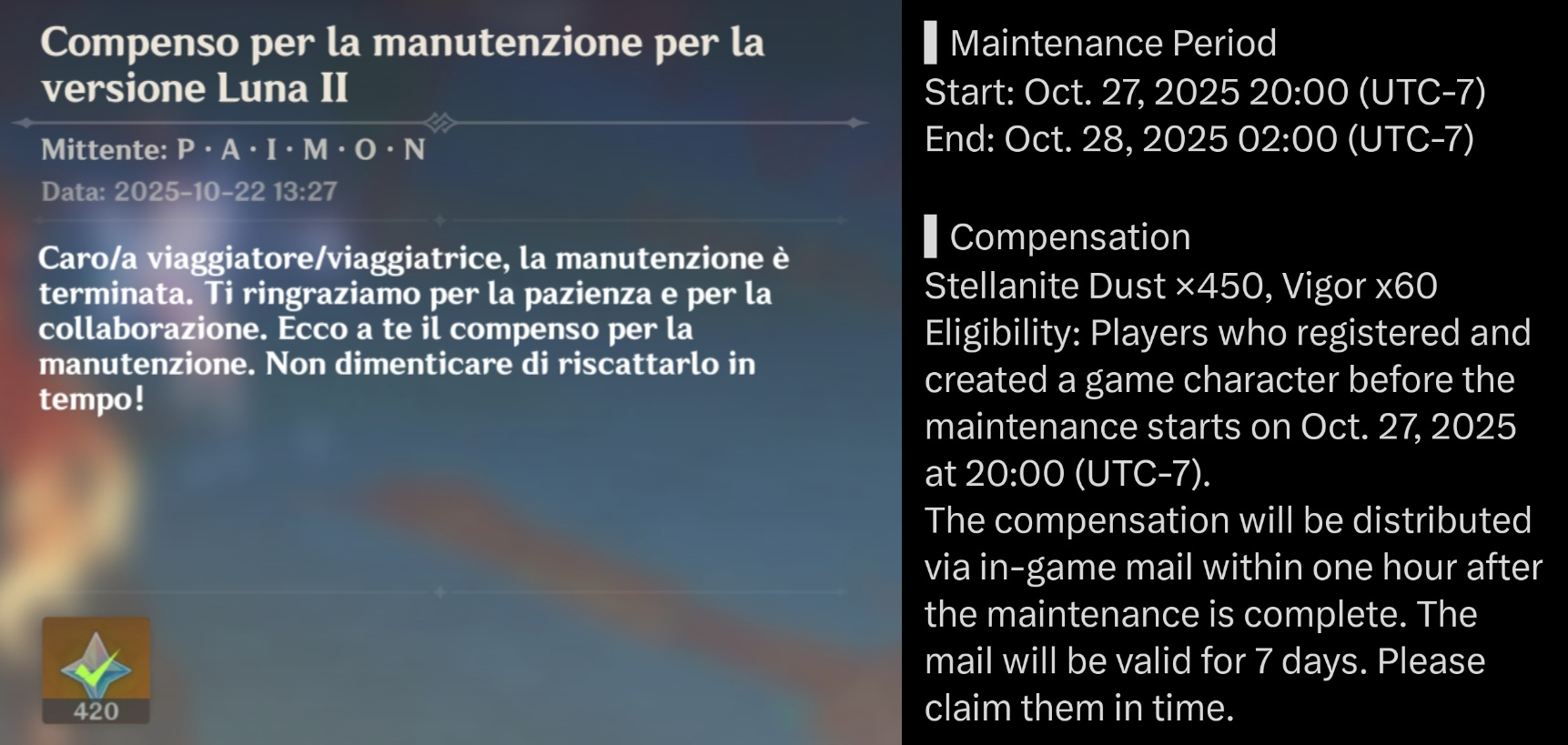 >>544260821You can check by looking up the maintenance announcement time then compare the time in your region right now and the time at that region right now.