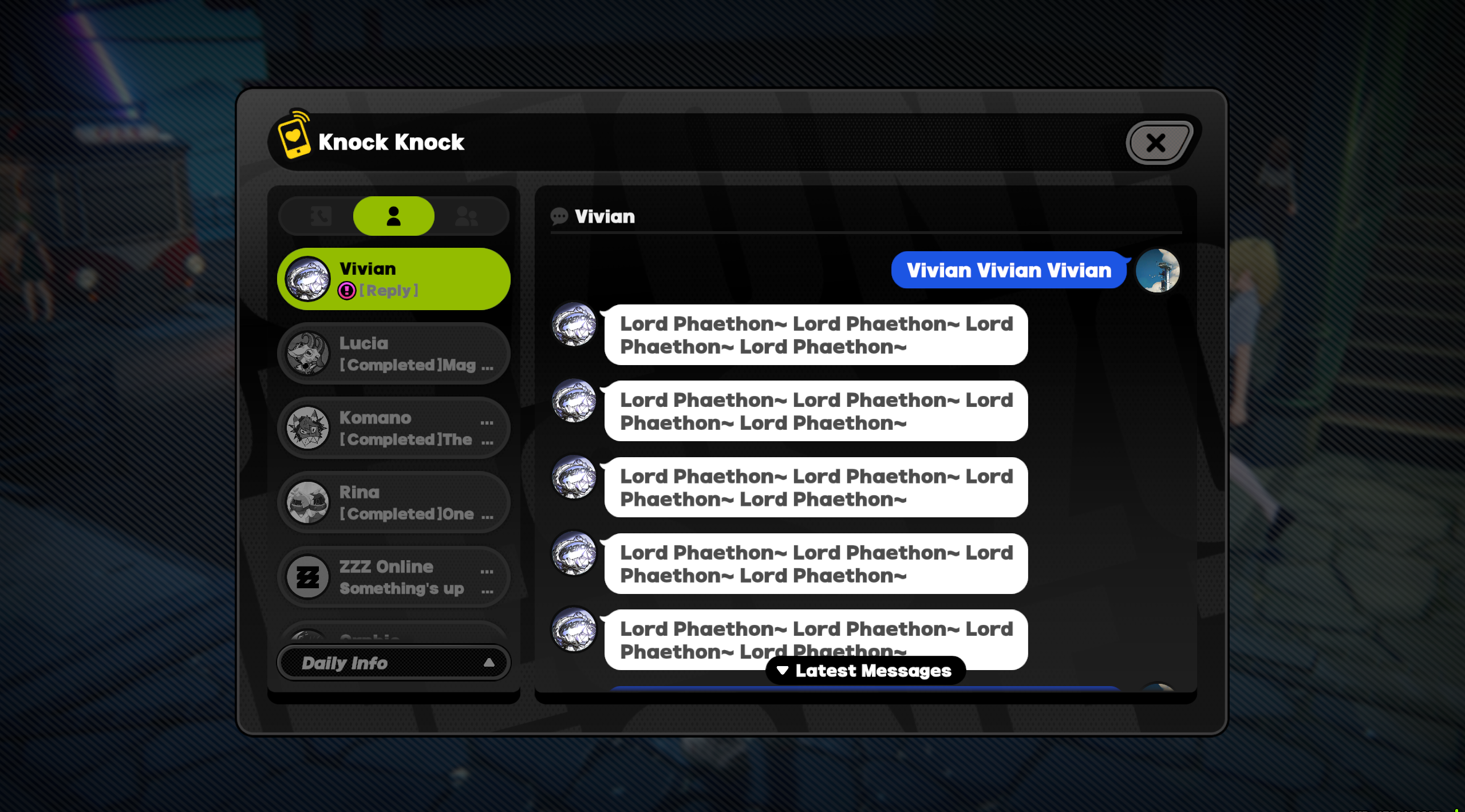 Previous: >>544191802>NewsAgent Record | Banyuehttps://www.hoyolab.com/article/41700148Agent Record | Dialynhttps://www.hoyolab.com/article/41681910Version 2.3 Special Programhttps://youtu.be/uTWIK77TcdI>Newest Trailer/Teaser/Character demohttps://youtu.be/NCzUV95VIEIhttps://youtu.be/CQBbCfxIgnY (EN)https://youtu.be/wutoIFoyZGU (JP)https://youtu.be/rT6FVNzD02E (EN)https://youtu.be/G5tW5IGjjk0 (JP)https://youtu.be/jaxcn1kja9Y (EN)https://youtu.be/buGfCjPLaZc (JP)>Upcoming Events for 2.3https://zenless.hoyoverse.com/en-us/news/160259All-New Program 10/14 - 11/25The Inverted Night Lantern 10/14 - 11/24When Dreams Remain Unfinished 10/17 - 11/24SNAP! Shining Strike 10/22 - 11/10Timesworn Hills Explorer's Guide 10/14 - 11/26Advanced Bounty: Routine Cleanup 10/29 - 11/03"En-Nah" Into Your Lap 11/05 - 11/25Chronicle of Counseling 11/05 - 11/17141 Eco Art Exhibition 11/12 - 11/24Data Bounty: Combat Simulation 11/19 - 11/24>Redeemable codes (claimable in-game or online)https://zenless.hoyoverse.com/redemptionZENLESSGIFTZZZ23SWEETILY>Resources and useful linkshttps://rentry.org/zzzlinkshttps://rentry.org/ZZZ-Friendshttps://interknot-network.com>/zzz/ OP pastebin (use this if making new thread):https://pastebin.com/PzbMf13P