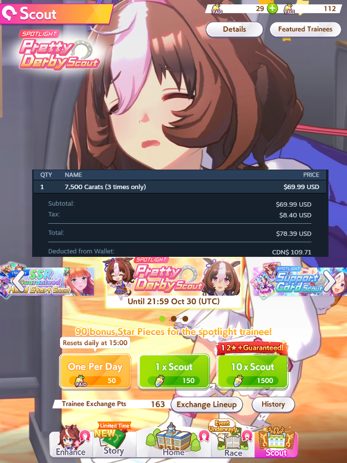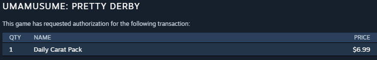 >Gotta spend Carats in a month for Creek>Gotta spend Carats the following month on Kitasan>Gotta spend Carats the month after that for OguriI'm so screwed