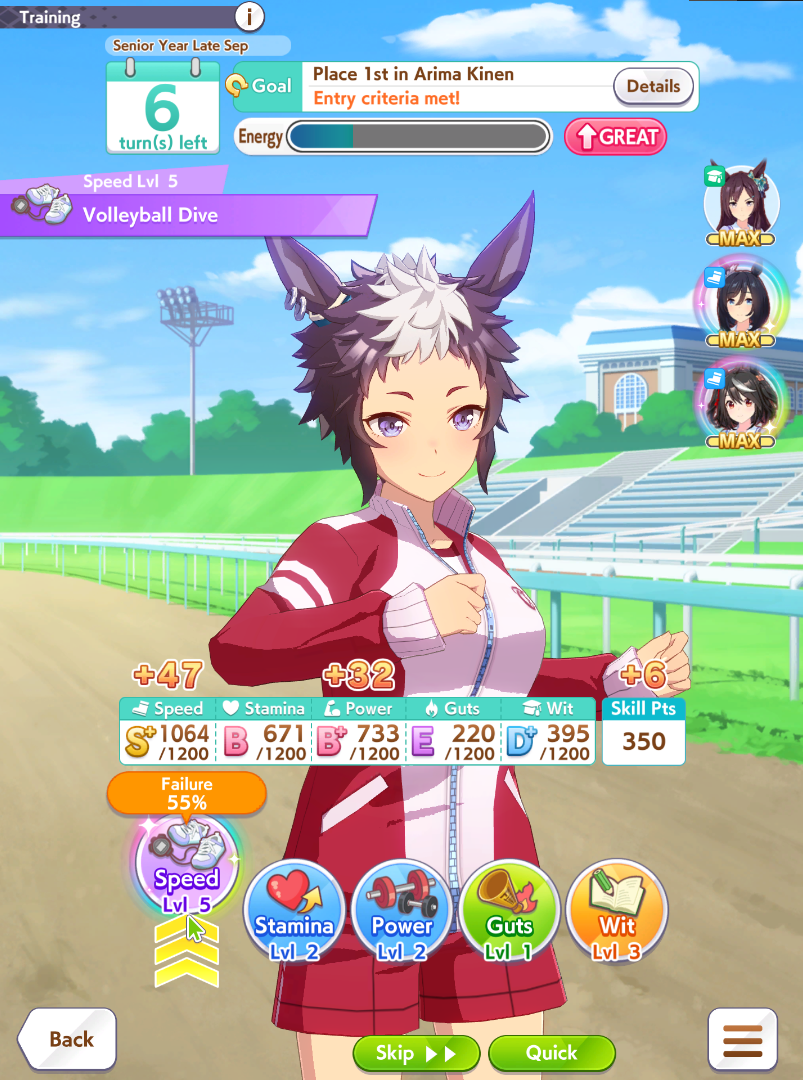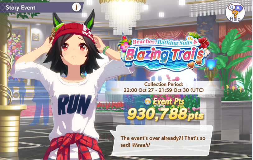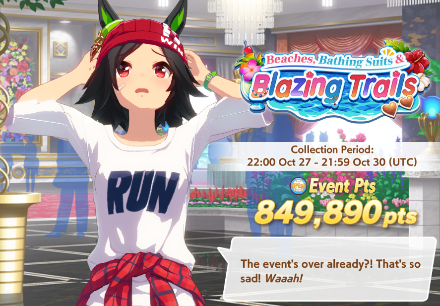 Previous: >>544246983 >Global Game NewsCurrent Rate Up: Meisho Doto (3*), Summer Maruzensky (Alt 3*), Summer Special Week (Alt 3*), Special Week (SSR), Tokai Teio (SSR), Sweep Tosho (SSR), Winning Ticket (SSR)10/14 - Summer Story event10/26 - Half Anniversary Part 110/30 - Eishin Flash (3*), Nice Nature (SSR), Tosen Jordan (SR)10/30 - LEO CUP - Hanshin 2200m>JP Game NewsCurrent Rate Up: Dantsu Flame (3*), Jungle Pocket (3* Rerun)>New Uma: Red Desire (VA: Sekine Hitomi)Timeline: https://uma.moe/timeline>IP NewsUmamusume Cinderella Gray 2nd season started weekly airings on 10/5Umamusume 6th Live Event Autumn Leg will be held on 10/18-19Guest Starring:Alexandros, Ooishi Masayoshi (Day 1), Kageyama Hironobu (Day 2)https://umamusume.jp/contents/event/tnf6th-autumn/>Thread Clubshttps://rentry.org/globalclubsumaYou must be E3 (20k points) to join a circle. Apply with /uma/ or /vg/ in your profile or post ID in the thread.>All Guides & Resourceshttps://rentry.org/uma26Game databasehttps://gametora.com/umamusume (Click the gear to switch between JP / global server info)A basic guide for newfagshttps://rentry.org/umaglobalFind networks if your region is blocked from the game or clienthttps://www.umavpn.top/93Seiyuu & Concertshttps://rentry.org/umst/uma/ POG (Paper Owners Game)https://rentry.org/umapog