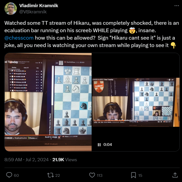 remember that time kramnik thought Hikaru was playing with the eval bar visible