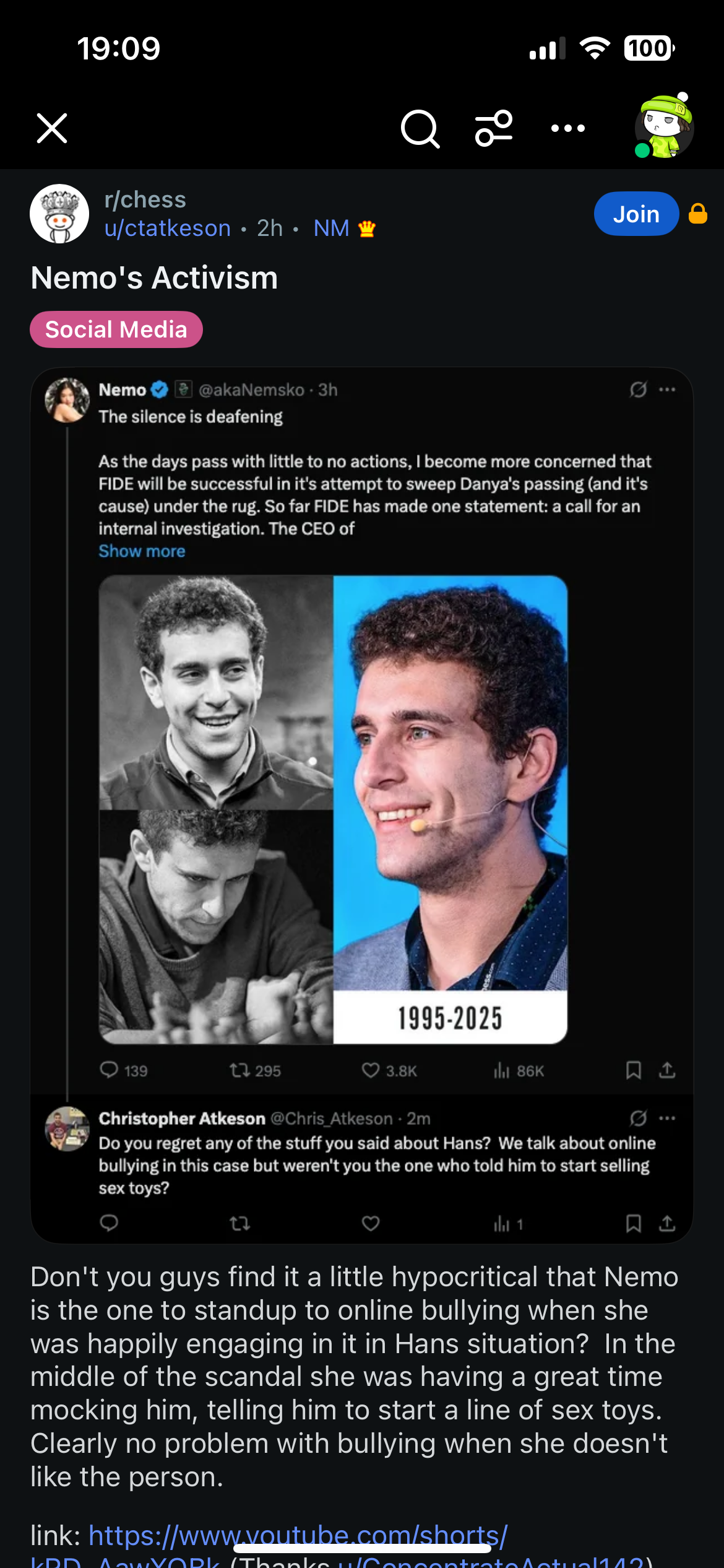 >>544286770A lot of the subsequent stuff Kramnik did, like the 'chesstrix' videos, were really embarrassing and made his imo legitimate concerns look like boomer paranoia