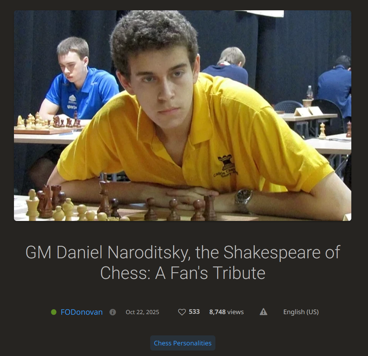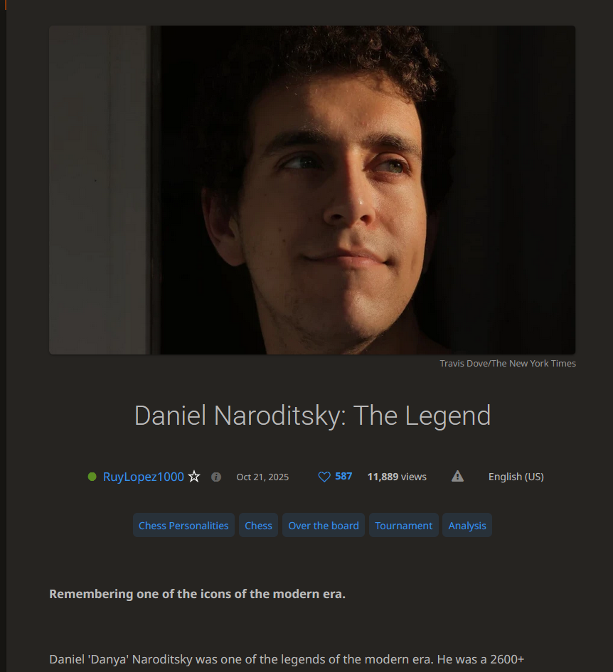 Someone ITT should AI slop a “Life and Games of GM Naroditsky” book and have it out for christmas.Easy milly Then donate a few thou to me for the idea