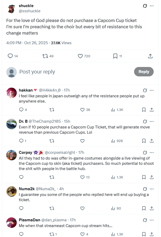 >Fandom: Hey this PPV thing is bullshit what the fuck>Influencers: Hey yeah this is messed up! Capcom what are you doing?>Nakayama: IT WASN'T ME IT WAS ANOTHER DIVISON PLEASE DON'T HURT ME>Fandom: Wow Nakayama-san is so brave for standing up to Capcom!>Influencers: Thank you Nakayama-san for providing a proper explanation, it seems the problem is now fully resolved, we can all go back to enjoying Street Fighter 6
