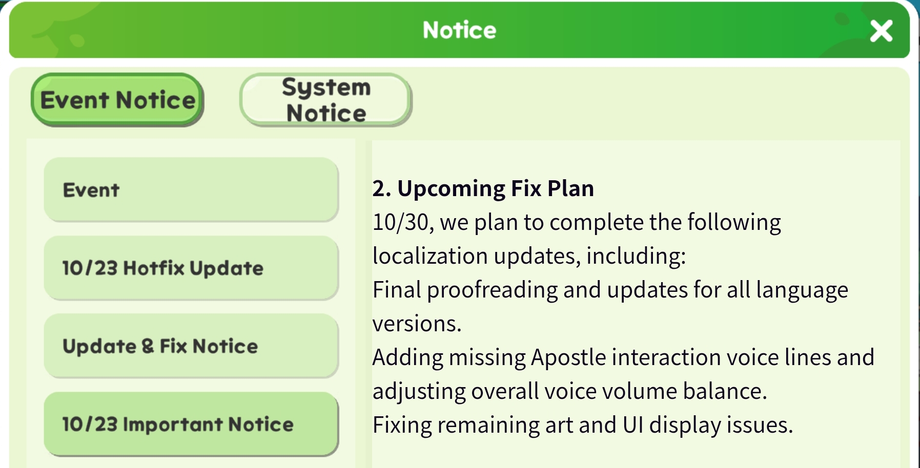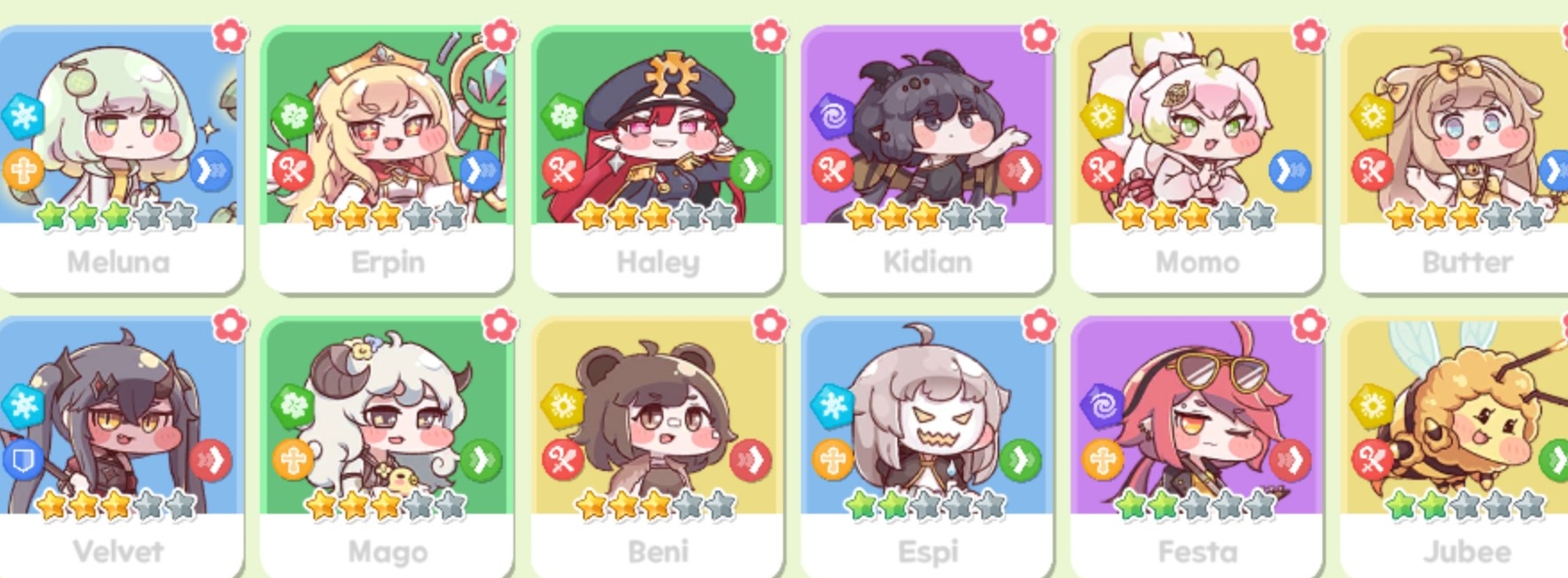 Previous: >>544230169>NewsWorlds 21 and 22 have unlocked with gear rank 7.Free Gabia skin package.>Banners(Chibi)11/6 | Butter10/30 - 11/6 | Kommy>Banner(Artifact)11/6 | Butter's Yellow Card10/30 - 11/6 | Kommy's Artifact (name unknown)>On going events11/6 | Melted Butter11/6 | Mini Game - Let's Go! Butter11/5 | PVP Season>Website & downloadhttps://trickcal.biligames.com/en/>CodesTRICKCAL109TRICKCALOBTKRELEASETK777TK888TK2025TKRANKINTRGAME8CP (Asia only)Emotes: https://mega.nz/folder/m8xTlKrb#fgDs8qThgkfchyZ0Y68awAKorean wiki: https://namu.wiki/w/분류:트릭컬%20리바이브English guide (might be wrong, use at own risk): https://lootandwaifus.com/trickcal-chibi-goChibi database: https://soshage.com/trickcal/unitFood preferance: https://lsbim.github.io/foodsSweep Tool: https://noswork.github.io/trickcal/sweep>Weekday Farms (put /trick/ in bio before applying dumbass):NA/EU: Cheeky, Calamity, Trickkers, YomiNTR, Cope, Pinch, ShibiCex, Kommynists, HeadEmpty, ChibiChapa, DiamonDogsAsia: trick, KisKoiKlan