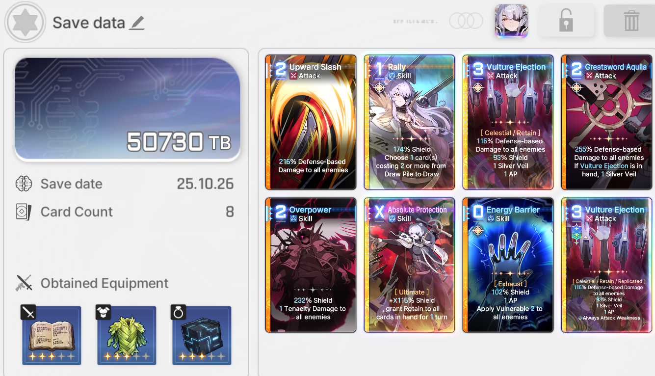 The Nightmare is Onging: >>544275614>Current Featured Banner/Upcoming BannerHaru - Striker - Justice - Until 11/12Yuki - Unknown - Unknown - Leaked/Expected around 11/12 >Current Events/Upcoming ContentA Flickering Gleam on a Rusted Anchor - Until 11/12Galactic Calamity Seasonal content (Gives one 5* dupe of your choosing per season) - Expected around 11/12 >Deck building simulatorhttps://czndecks.com/>Basic Guides and Introductionhttps://www.youtube.com/watch?v=B-0CaRtTTpQhttps://www.youtube.com/watch?v=zDFkvOXO2Jg >PC Client (Stove)https://www.onstove.com/en/download >Reroll guidehttps://game8.co/games/Chaos-Zero-Nightmare/archives/559640>Reroll tipsReroll Beginner Banner for desired character, Standard banner to guarantee two 5 star start, or reroll for HaruYou have enough rolls to finish beginner banner and one 10 roll on limited banner (You can still luck yourself two 5 stars through beginner banner) >Cards aren't savingCards saving scales to chaos difficulty and if Deep trauma mode is on (purple icon on top right of chaos team formation)
