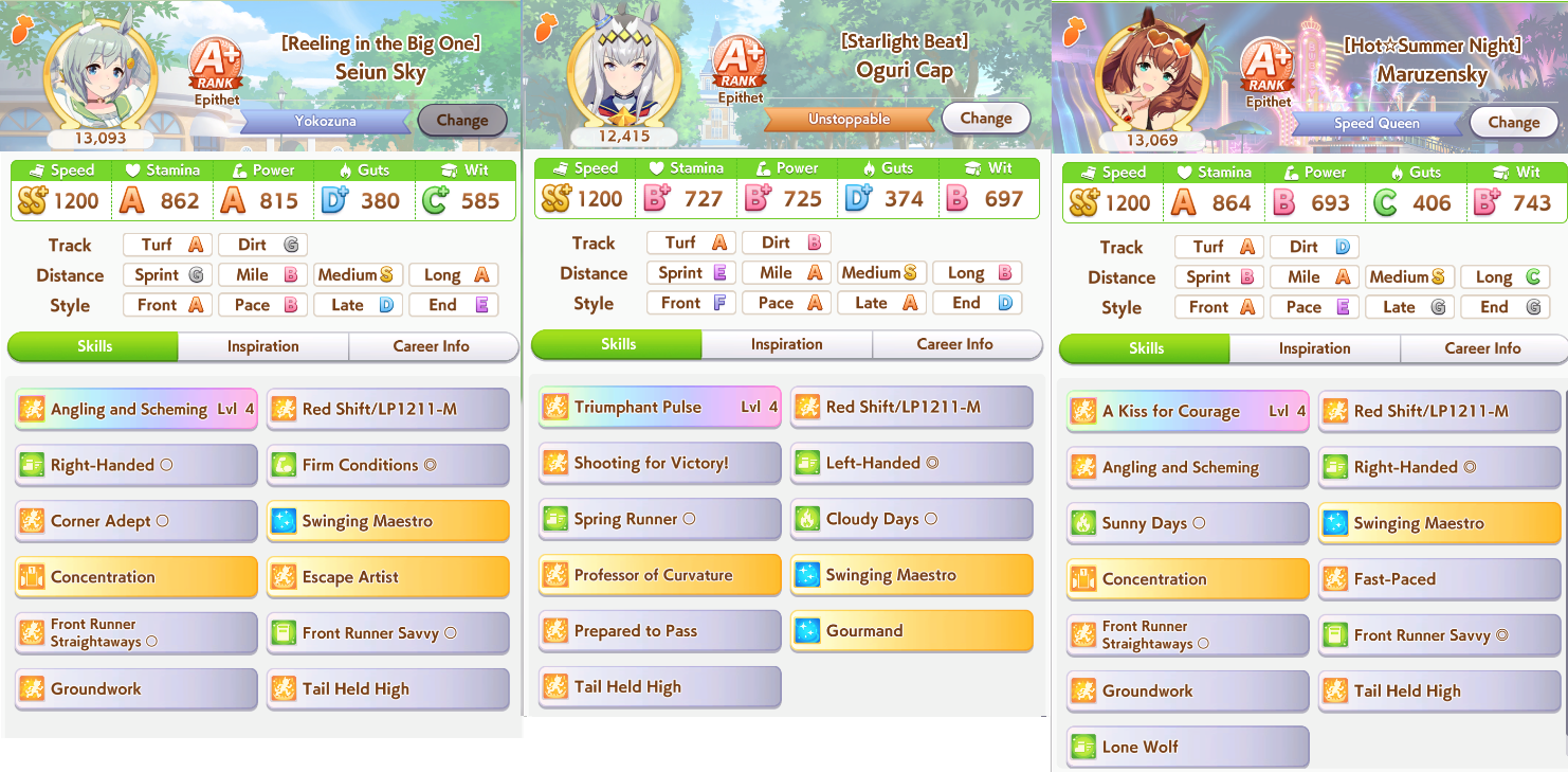 >>544345201You'd be better off just getting 9* power sparks, bunch of mid race skills and yolo on URA with great affinity.