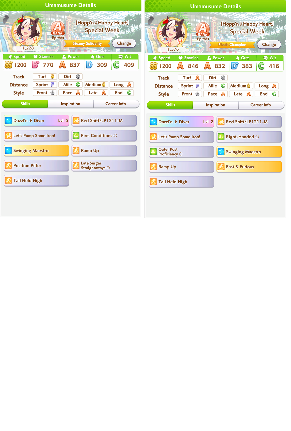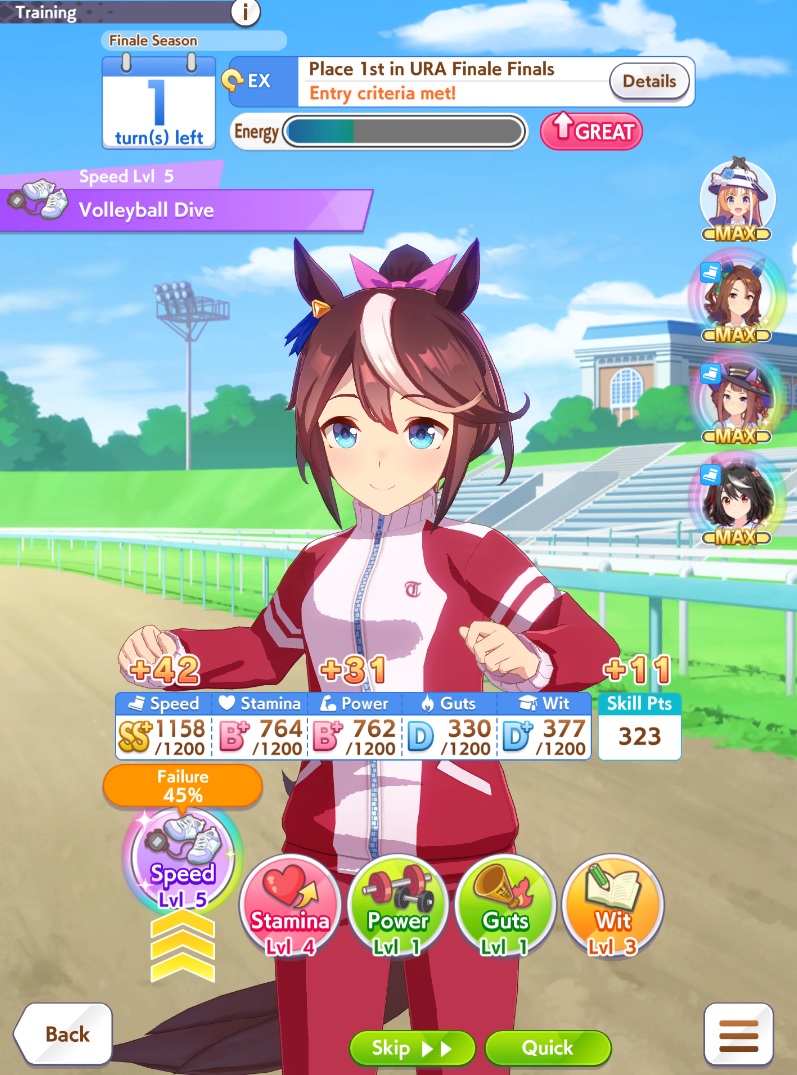 >>54436573714* Stam, 3* Power, I just high rolled Speed rainbows a lot and was max Speed just before starting the Ura races. And I train Power in the Summer when a bunch of my Supports go on it