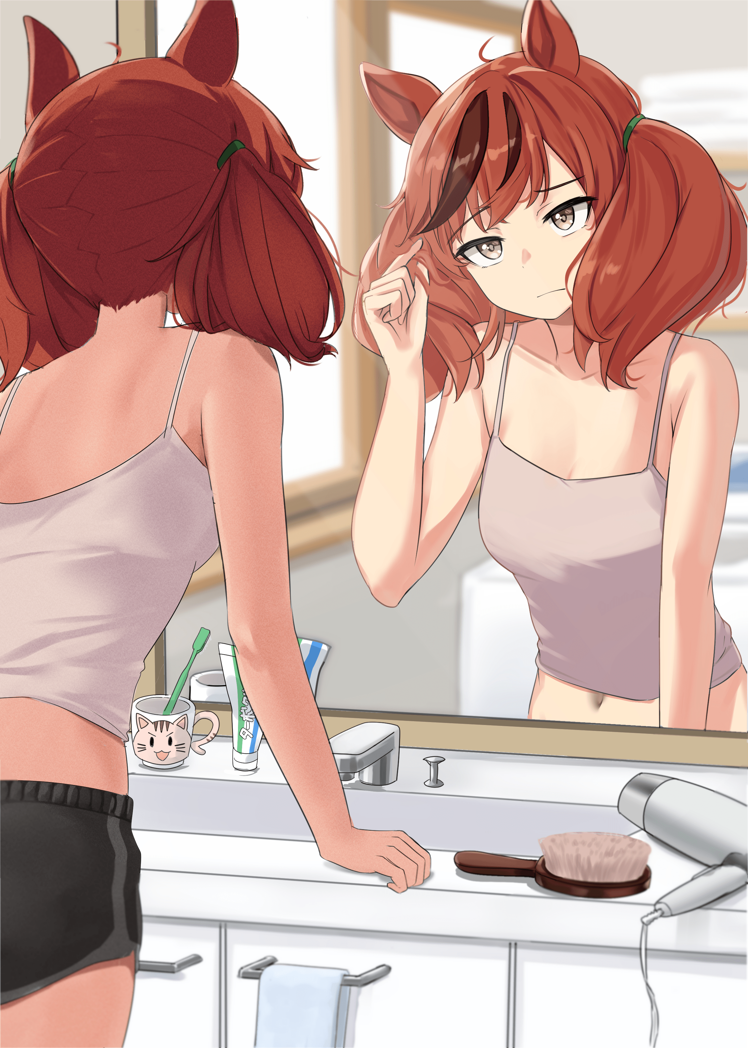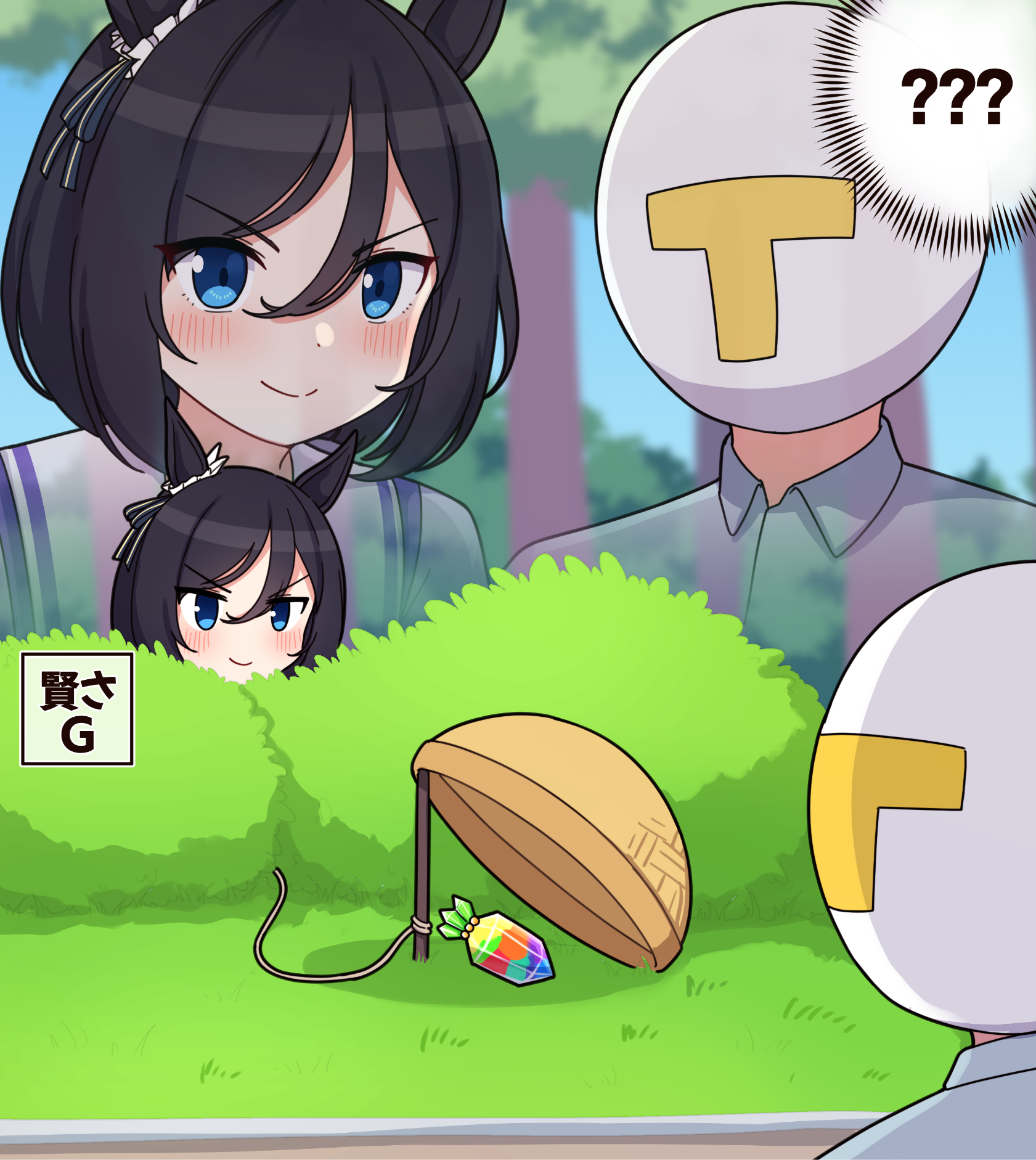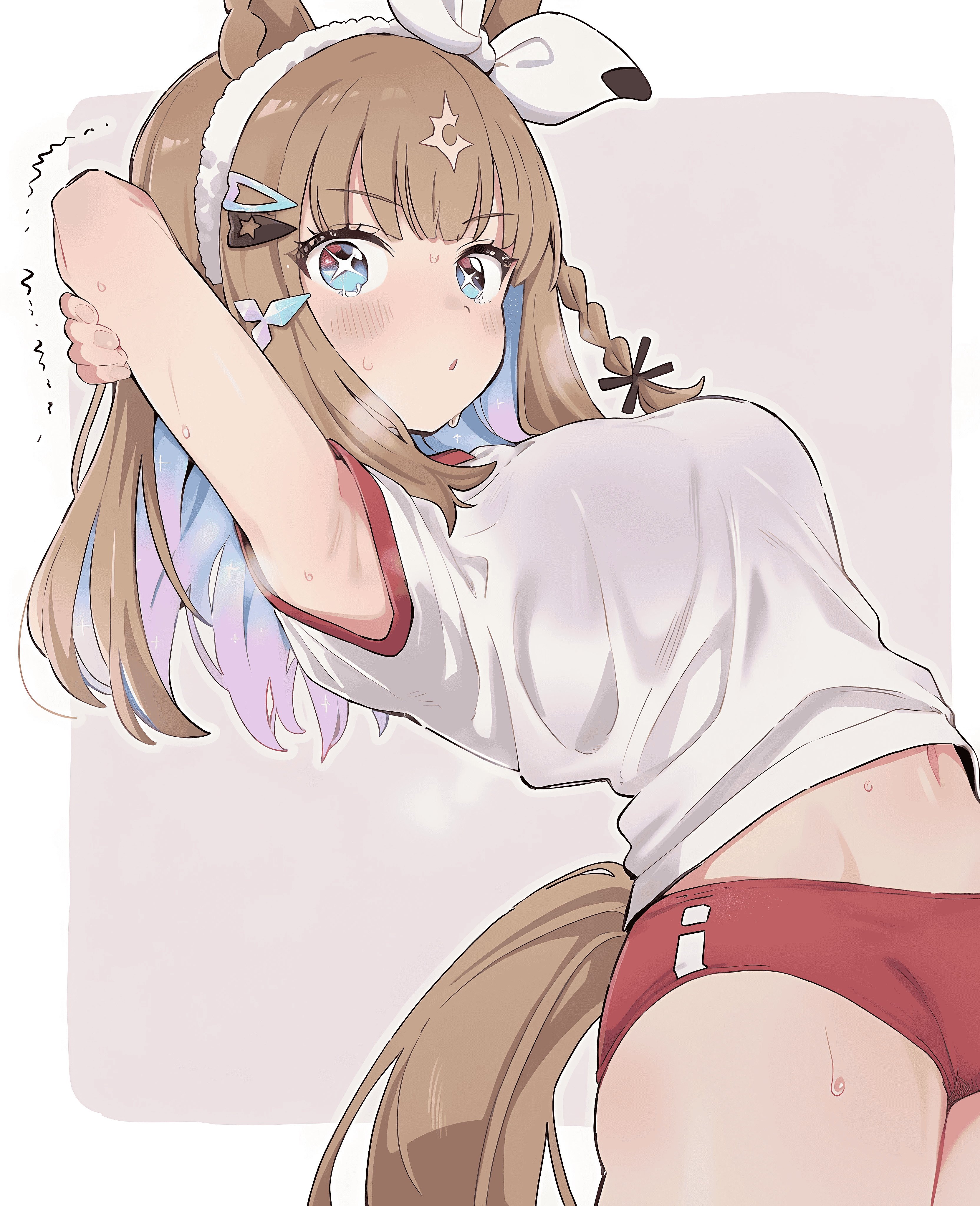sniffing Grass Wonder's big sweaty butt that can't fit into her bloomerssniffing Tazuna's large sweet smelling butt as she settles in at Tracen