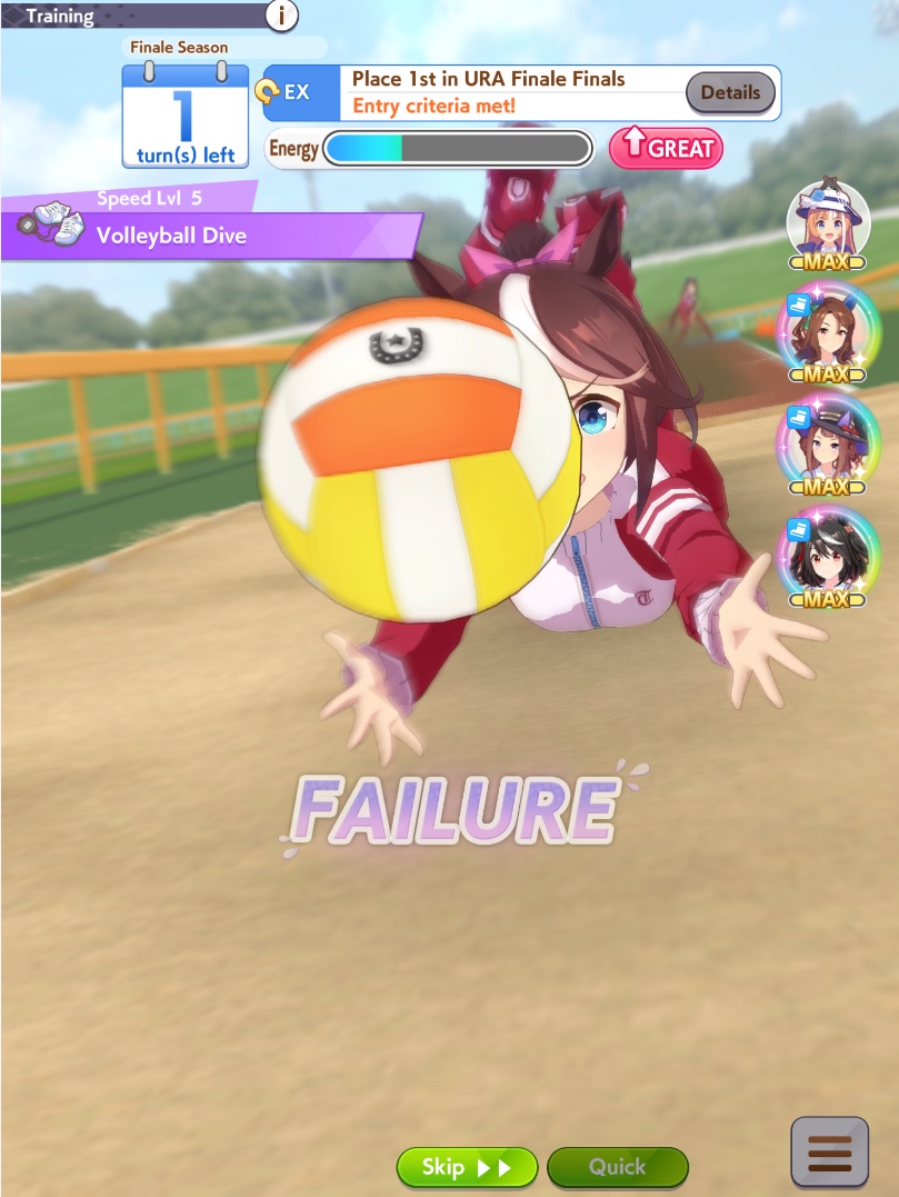 >>544346963My Maru got a late start AND missed the wit check for Groundwork.Then my Spe-chan missed the wit check on her mid race velo skills.Then my Taishin missed the wit check on Pump.That was one of the most catastrophically awful races I've ever been in my life and I sure hope something that scary doesn't happen in my finals.