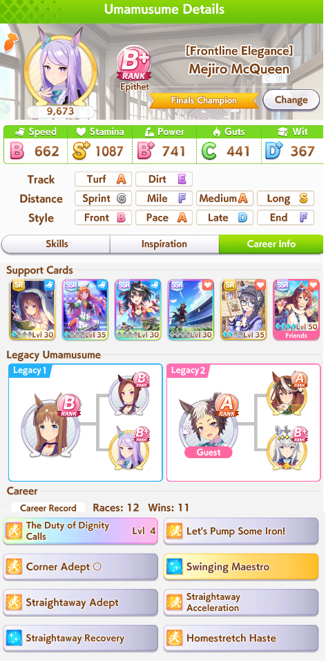 >horse is shit at miles>career forces you to run 1-3 mileswhy does Cygames keep fucking doing thisthis is why I love doing Teio runs, she just wins everything and makes me happy, while Bourbon makes me want to end it all every run