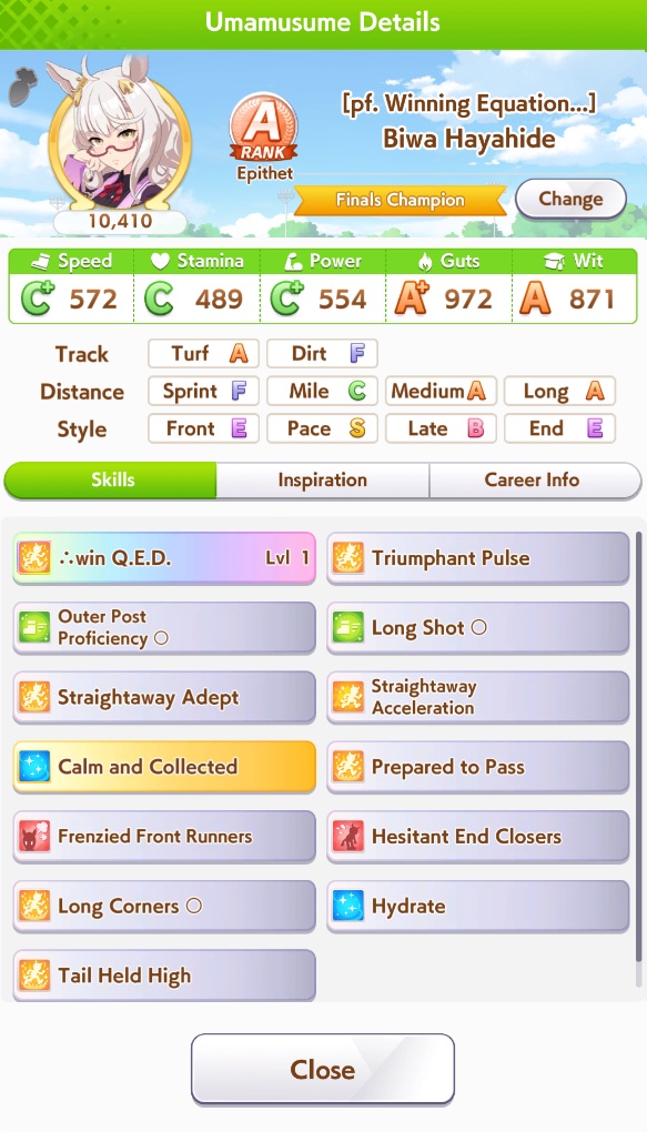 >>544368232Her entire is just a check if you've managed to get Swinging Maestro before Kikuka Sho