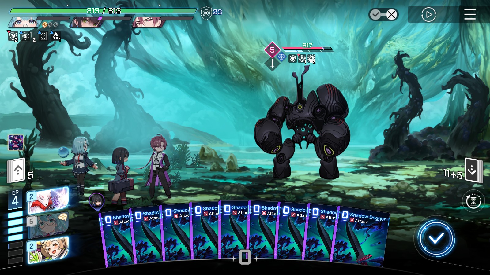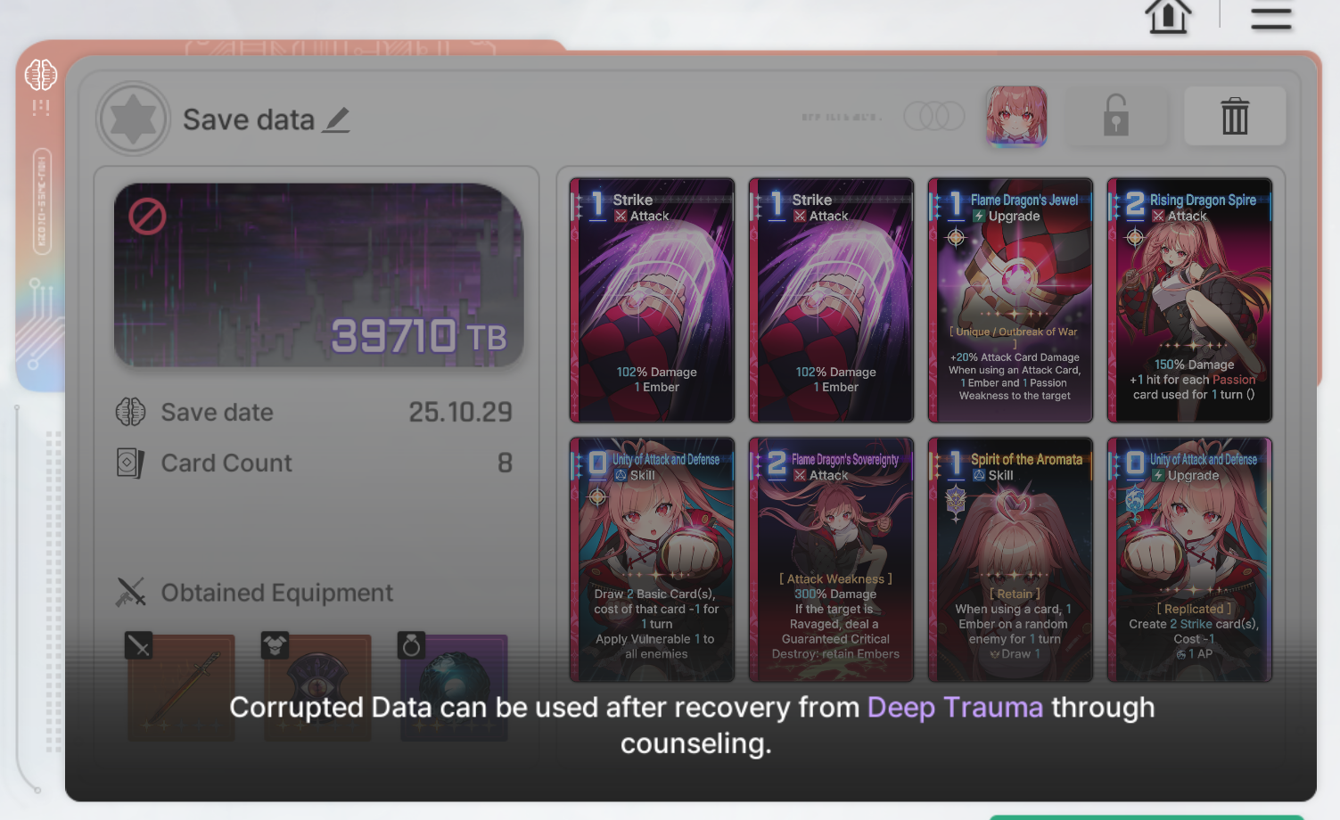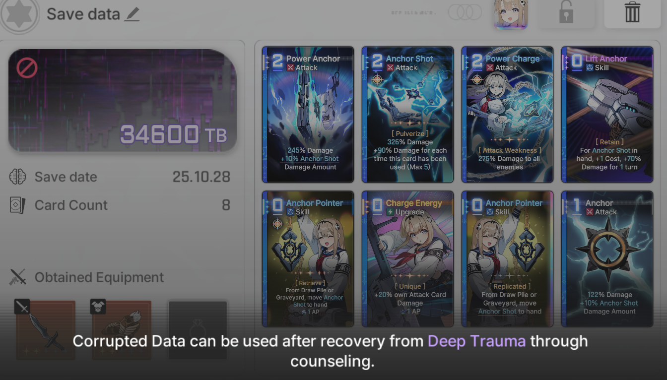 Cards saving scales to chaos difficulty and if Deep trauma mode is on (purple icon on top right of chaos team formation)