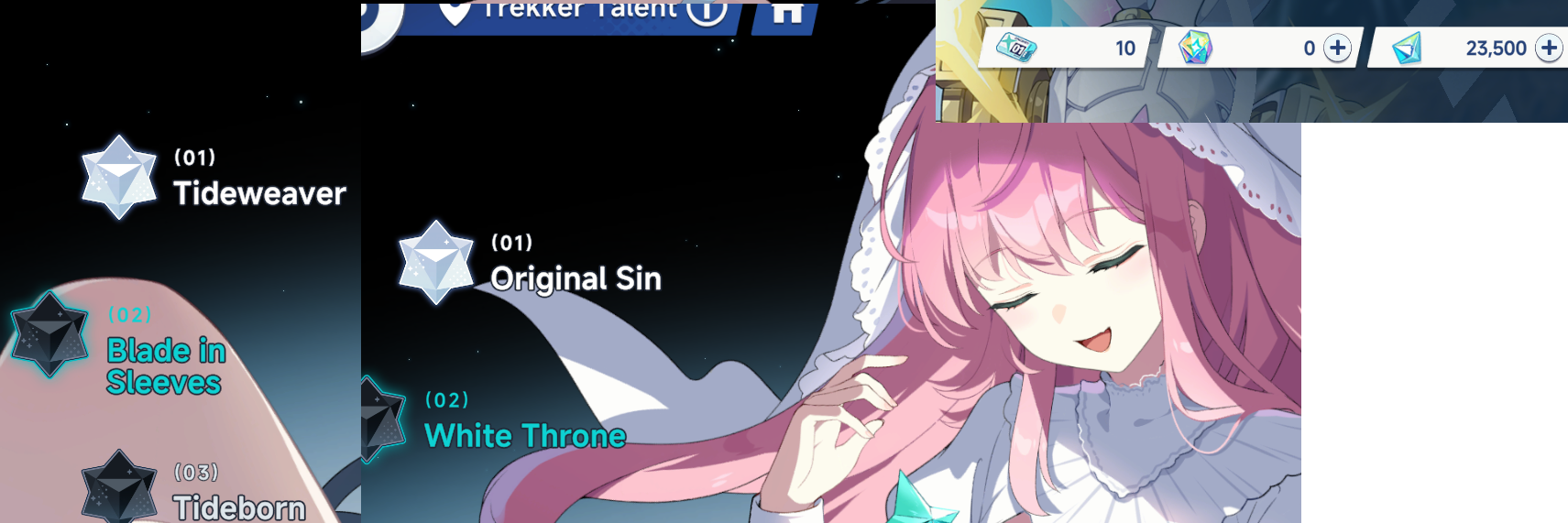 Previous Commission: >>544384721>Event PVhttps://www.youtube.com/watch?v=5J98rb790VQ>Game Website & Downloadhttps://stellasora.global/>JP Clienthttps://stellasora.jp/>Current Content[10/19-11/10] Limited Recruit - (Aqua) 5* Chitose + (Lux) 4* Jinglin and (Aqua) 4* Teresa[10/19-11/10] Disc Pickup - (Aqua) 5* "Sword Against Stream"[10/27-11/27] Login Event - Wind, Wave, Wild Adventure[10/27-11/17] Limited Recruit - (Lux) 5* Shia + (Lux) 4* Tilia and (Ignis) 4* Kasimira[10/27-11/17] Disc Pickup - (Lux) 5* "Ripples of Nostalgia"[10/27-11/17] Limited Event - Daring adventure! The Ghost Ship Haunts the Deep[10/27-11/17] Paid Skin - Noya[10/27-11/17] Cataclysm Survivor - Catastrophe (Element: Lux+Aqua+Ventus)[10/27-11/17] Menace Gala - All Elemental Arena Open>Upcoming Content[11/10-11/17] A Finale Echoing (Element: None)[11/10] New Nova Times Chapters[11/17] Main Story Chapter 3 Release>Wikihttps://novasora.wiki/>Resources and useful linkshttps://rentry.org/StellaSoraResources>CodesBOSSGIFT