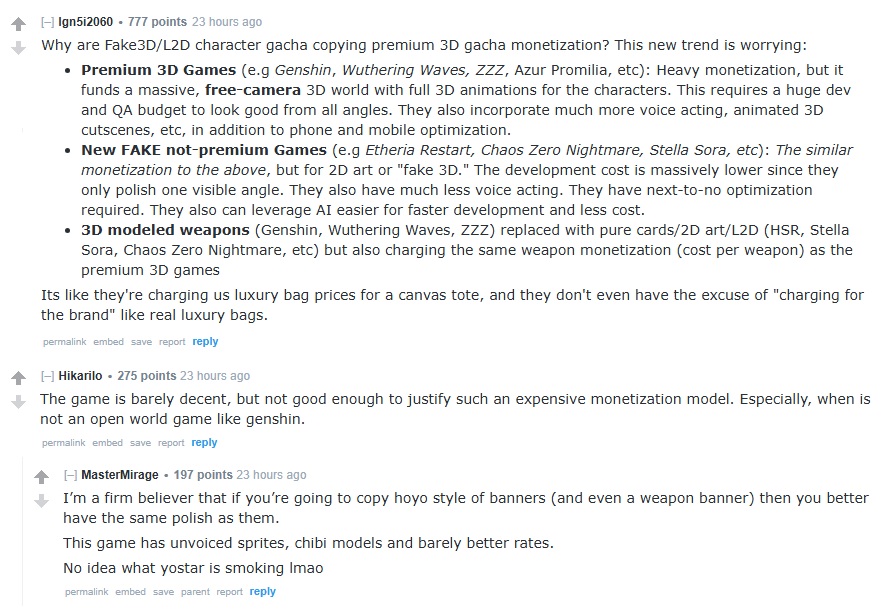 >The game is fine because i pay pig for overpriced slop>The game is fine because i rerolled almost 2 weeks after release for both limited>The game is fine because i haven't used my one time currencyThe shills that Yostar is paying for aren't very good at their job, i hope they aren't paying them too many rupees for this slop shilling, but with how stingy they seem to be it should be fine.