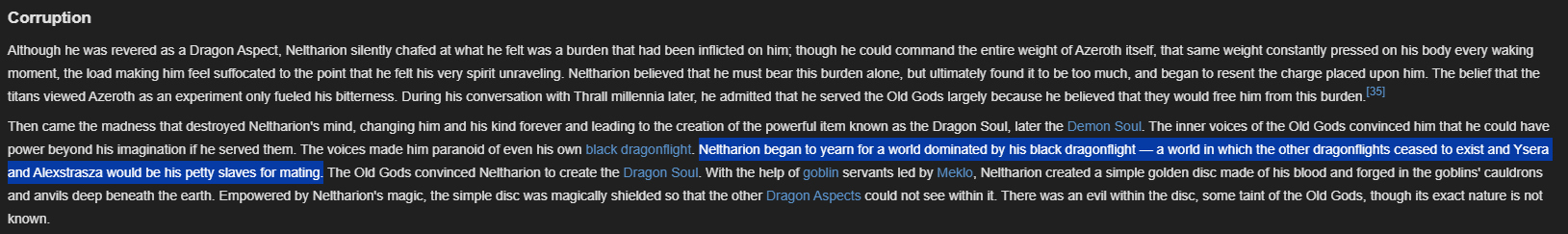 >>544427637This retcon does not make sense since Deathwing canonically wanted to fuck Alexstrasza himself. Why wouldn't he come in there while she's held captive and impregnate her?