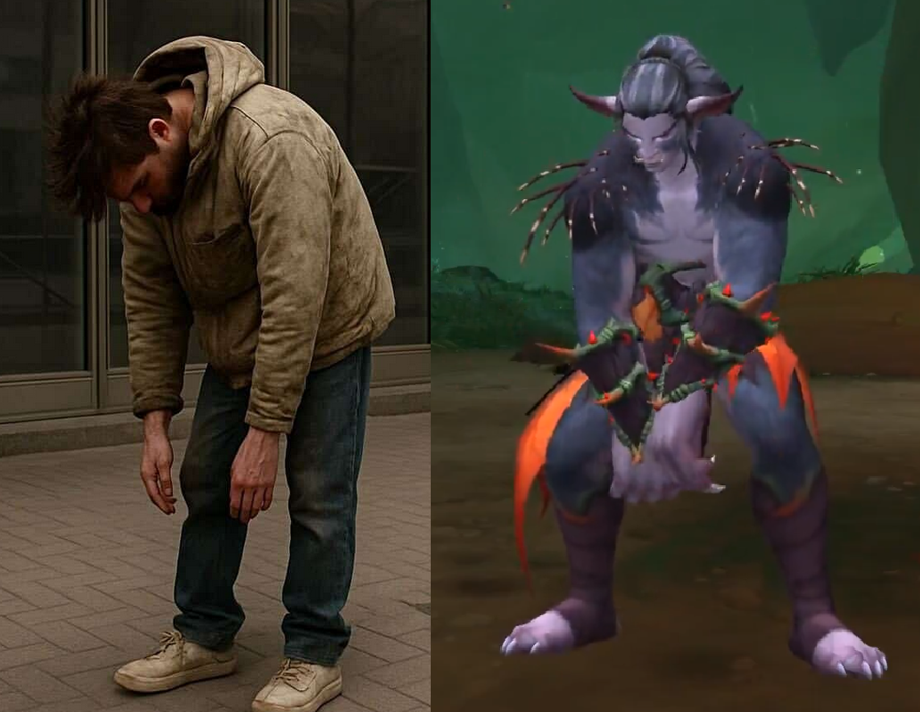 >>544462864Ive always thought the idea of WoW genetics to be really funny. Like imagine the look of what you described, a fucking dwarf-shaped Nightborne manlet waddling around. Or a tauren-Night Elf hybrid. I would main a Kul'tiran/Orc hybrid mongoloid.