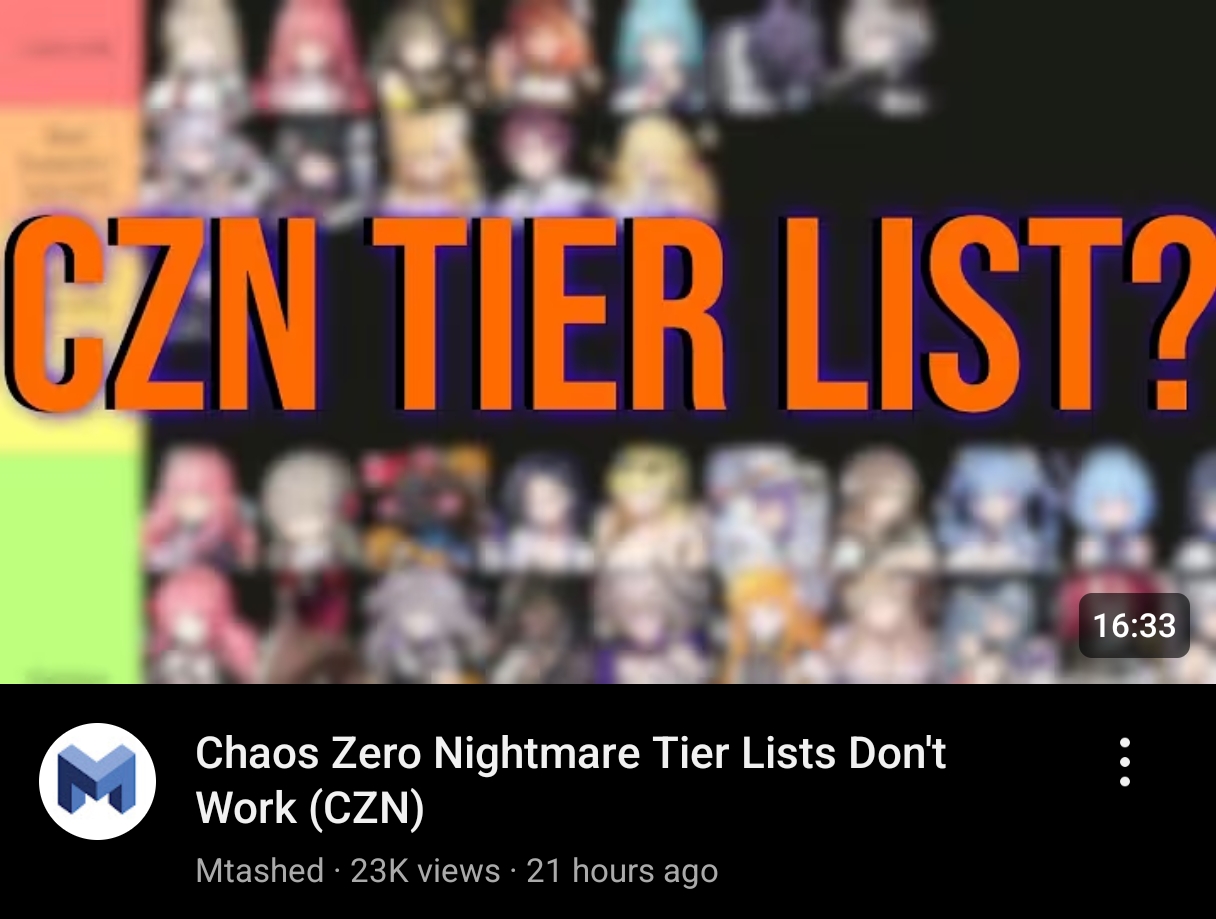 The nightmare is onging... >>544403360Renoa's white tier ass edition>Current Featured Banner/Upcoming BannerHaru - Striker - Justice - Until 11/12Yuki - Unknown - Unknown - Leaked/Expected around 11/12>Current Events/Upcoming ContentA Flickering Gleam on a Rusted Anchor - Until 11/12Galactic Calamity Seasonal content (Gives one 5* dupe of your choosing per season) - Expected around 11/12>Basic Guides and Introductionhttps://www.youtube.com/watch?v=B-0CaRtTTpQ [Embed]https://www.youtube.com/watch?v=zDFkvOXO2Jg [Embed]>Deck building simulatorhttps://czndecks.com/>PC Client (Stove)https://www.onstove.com/en/download>Reroll guidehttps://game8.co/games/Chaos-Zero-Nightmare/archives/559640>Reroll tipsReroll Beginner Banner for desired character, Standard banner to guarantee two 5 star start, or reroll for HaruYou have enough rolls to finish beginner banner and one 10 roll on limited banner (You can still luck yourself two 5 stars through beginner banner)>Cards aren't savingCards saving scales to chaos difficulty and if Deep trauma mode is on (purple icon on top right of chaos team formation)