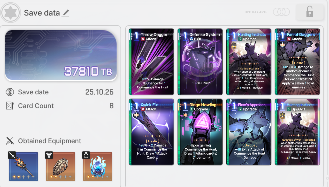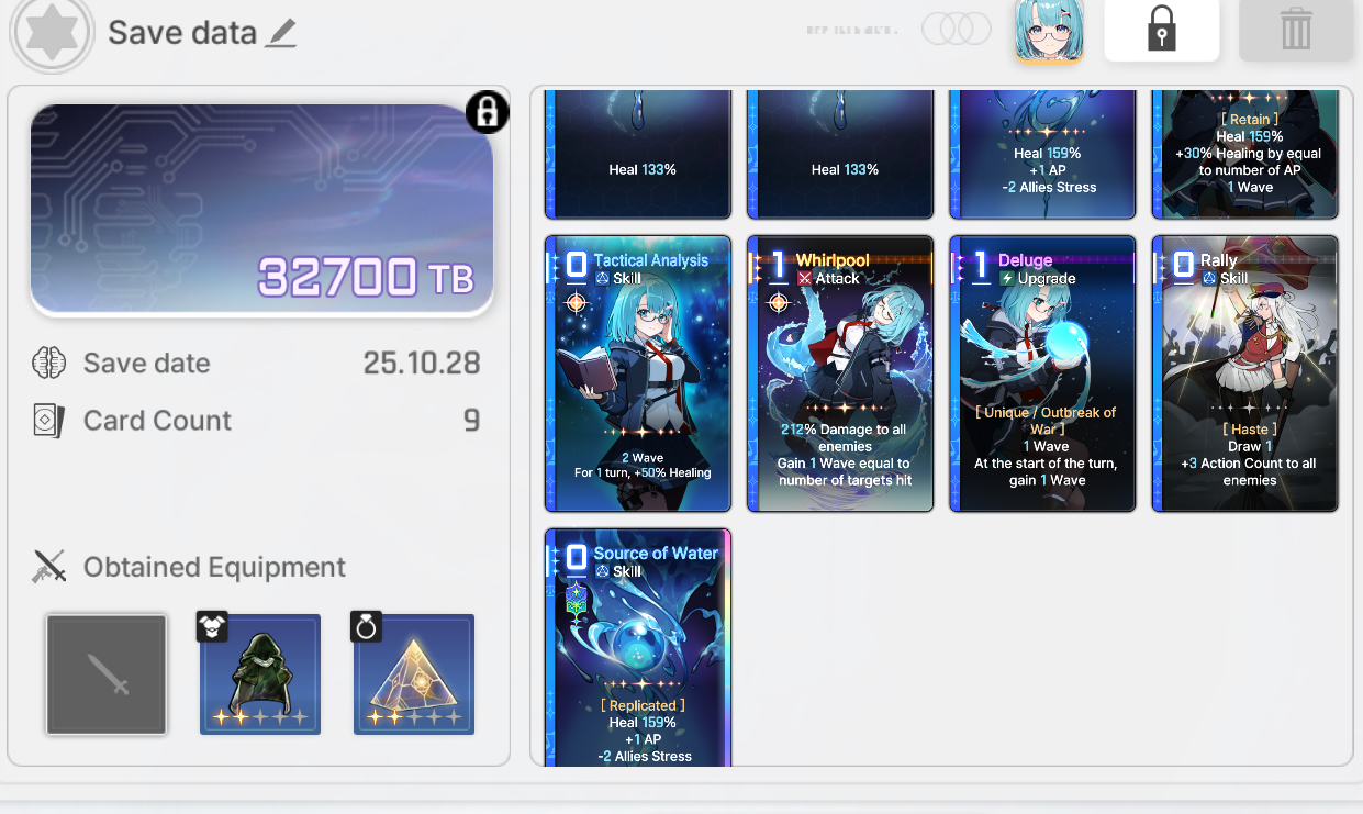 >>544452441Mythic equipment and monster cards definitely brick the save.