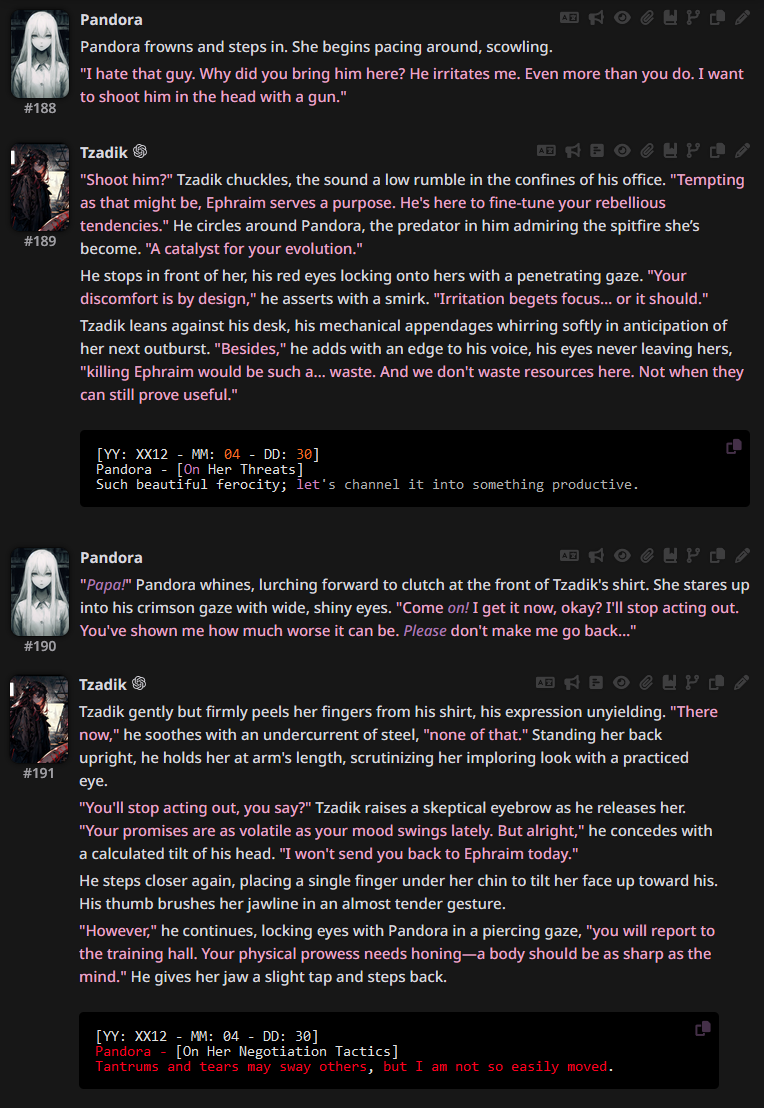 /aicg/ - A general dedicated to the discussion and development of AI chatbots#589 I miss Chef edition...▶https://rentry.org/aicg_vg_memo▶This general is for discussion of the interactive experiences you can build on top of AI chatbots.>NewsClaude Haiku 4.5 https://www.anthropic.com/news/claude-haiku-4-5Deepseek V3.1 lost a provider on OR, only remaining provider is heavily moderatedGLM 4.6 https://z.ai/blog/glm-4.6Claude Sonnet 4.5 https://www.anthropic.com/news/claude-sonnet-4-5Sonnet 3.5/3.6 to be retired in a week https://docs.anthropic.com/en/docs/about-claude/model-deprecationsadditional info: https://aicg.neocities.org/info>FrontendsSillyTavern: https://docs.sillytavern.appRisuAI: https://risuai.netAgnai: https://agnai.chat | https://rentry.org/agnai_guides_>Botshttps://characterhub.org | https://chub.aihttps://realm.risuai.nethttps://char-archive.evulid.cchttps://partyintheanchorhold.neocities.orghttps://aicg.neocities.org/bots>Modelsjailbreaks: https://rentry.org/jb-listinggpt: https://platform.openai.com/playground | https://platform.openai.com/docsclaude: https://console.anthropic.com | https://docs.anthropic.com | https://rentry.org/how2claudegemini: https://gemini.google.com | https://ai.google.dev/docs | https://rentry.org/gemini-qrdeepseek: https://chat.deepseek.com | https://api-docs.deepseek.comlocal: >>>/g/lmg | https://aicg.neocities.org/local | https://openrouter.ai>Botmakinghttps://aicg.neocities.org/botmakinghttps://desune.moe/aicharedhttps://agnai.chat/editor>MetaOP templates: https://rentry.org/vgOP | https://rentry.org/aicgOPaicg botmaking events: https://aicg.neocities.org/eventslore: https://rentry.org/aicg_chroniclesrice: https://aicg.neocities.org/ricingservices assessment: https://rentry.org/aicg_metalogs: https://sprites.neocities.org/l/r | https://chatlogs.neocities.orgprev: >>544342607
