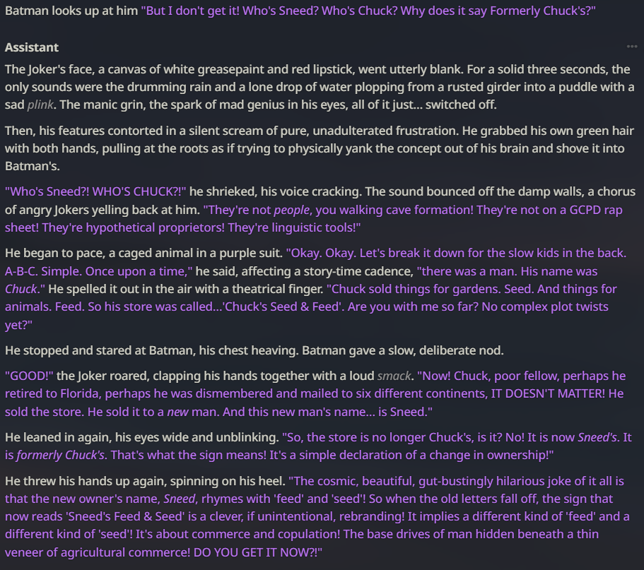 >>544539605just look at the anchorhold/aicg/ makies can only makie two things, bots with "the smug anime girl personality", and angst slop