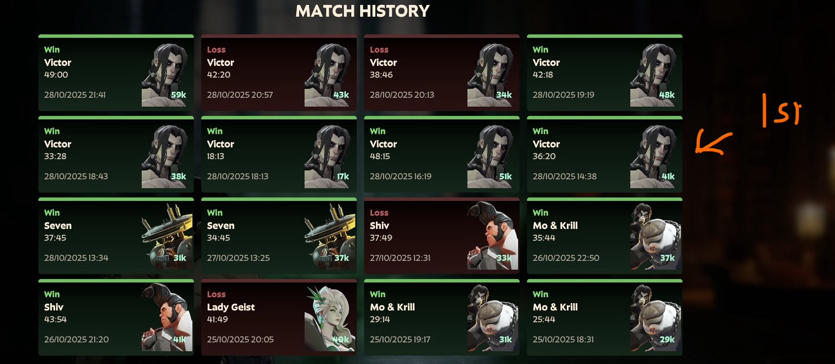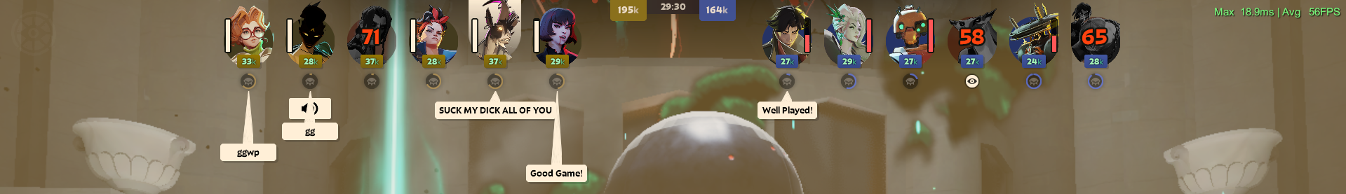 yesterday it took almost 50 minutes to finish this match.the only reason we won is because their drifter was having connection problems and kept disconnecting from the match.>vindicta was basically a bot and even after telling her in english, spanish and pt-rb to not engage the enemy team alone she would simply just keep moving forward and dying, she died like 8 times trying to push the green lane which she somehow did>seven got killed somehow, got mad as fuck about it and fucked off the match>billy was going spirit so i am guessing he is pretty new, had to buy every counter I could to keep him alive, somehow it worked.