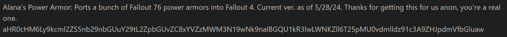 Illegal mods edition>Fallout 4 Resources:http://rentry.org/fo4resc>Fallout 76 Resources:http://rentry.org/fo76resc>Fallout 1 and 2 Resources:http://rentry.org/fo12resc>Fallout 3 and New Vegas Resources:http://rentry.org/fo3nvresc>/fog/ Modding Guideshttp://vivanewvegas.moddinglinked.com/http://themidnightride.moddinglinked.com/index.html>/fog/ Asset and Mod Repositoryhttp://rentry.org/89gads>/fog/ MSPaintAdventureshttp://rentry.org/fogwasters>F76 Portsdrive.google.com/drive/folders/1lfZbIxkuIT-eVI-YGw-6__bMGISPsoaQ>OP Pasta:http://rentry.org/fogpastaRemember to use base64 to decode any protected downloads in any of the resource documentation.Pre-War thread: >>543941280
