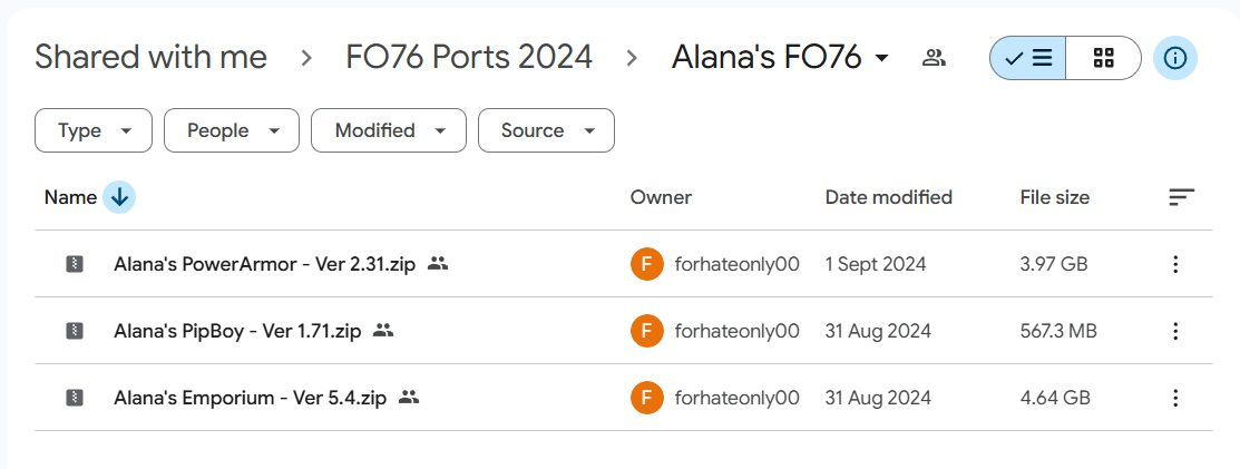 >>544447470Did you even open google drive in OP? One of the folders is literally “Alana's FO76”