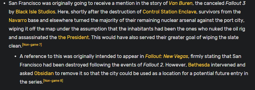 >>544452247As an Enclavefag, I liked how every faction gets their own "Destroy the Enclave" quest in AR2 despite it being extra content. The developer didn't have to go the extra mile but he did anyway>Brotherhood gets a frontal assault on the Army Depot>Institute has you kidnap an officer and replace them with a synth>Minutemen take the Vertibird refueling station and steal their uniforms>All quests lead (You) to the Atlantic Oil Rig to sabotage the reactor >then you watch it explode in a homage to Fallout 2's ending
