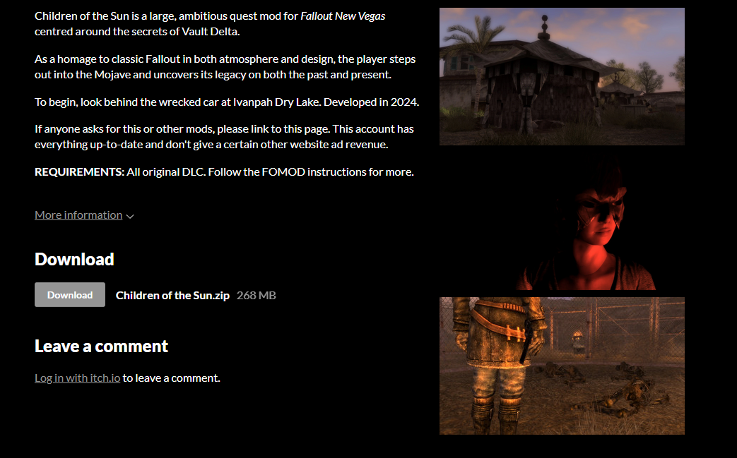 >>544670939If it wasn't such an old game with a dated modding scene I'd probably end up trying to learn how to make it myself, but I just have no motivation when fo5 could get announced either a month from now or 2 years from now. Guess I'll try then and hope 5 is a decent game.