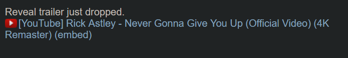 Reveal trailer just dropped.https://www.youtube.com/watch?v=dQw4w9WgXcQ
