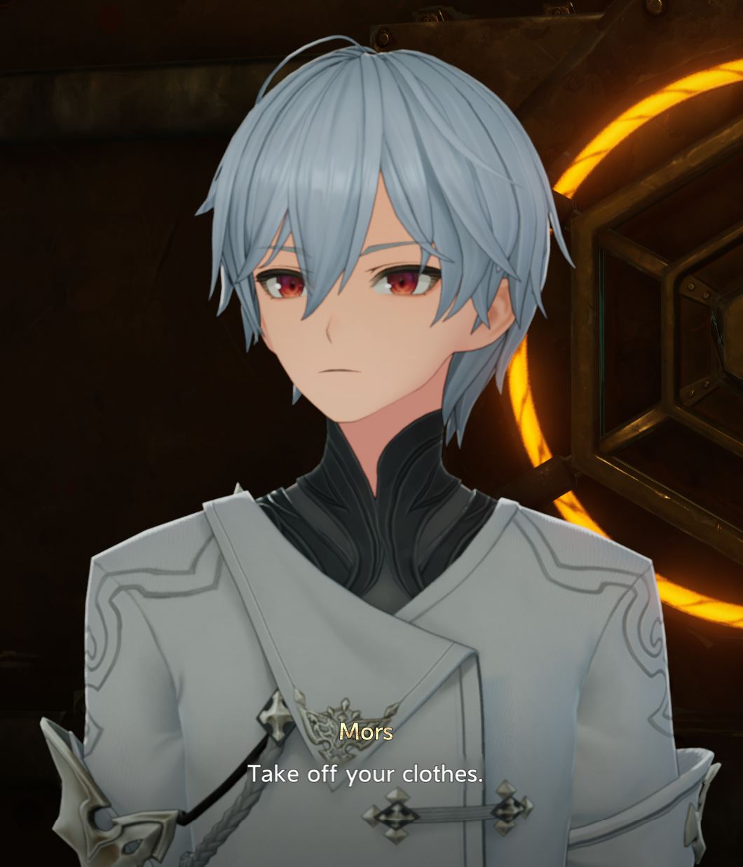 >NPC bugs out during the voiced dialogue and has this expression the whole time
