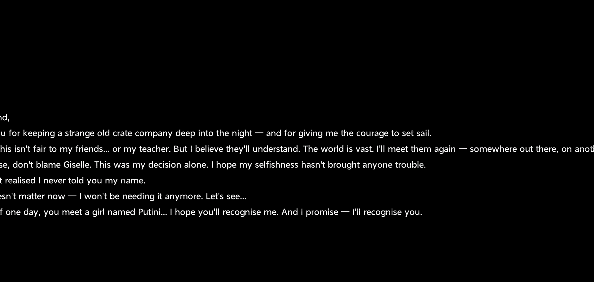 >cutscene ends>character starts flying away