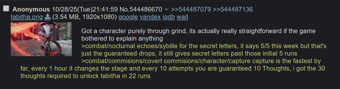 >>544474935this game is really meant to grind with friends, either irl or 4chanits not going to be one of those "play for 10 minutes a day then go straight to trolling the general for (Yous)"
